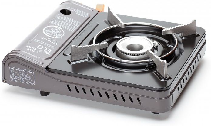 Портативная газовая плита, работает от газового баллона 220 г. Конфорка из литого алюминия. Пластиковый кейс удобен для хранения и транспортировки.