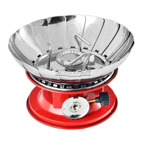 Портативная настольная туристическая газовая плита с регулируемым ветрозащитным экраном подойдет для использования 4-5 людьми.