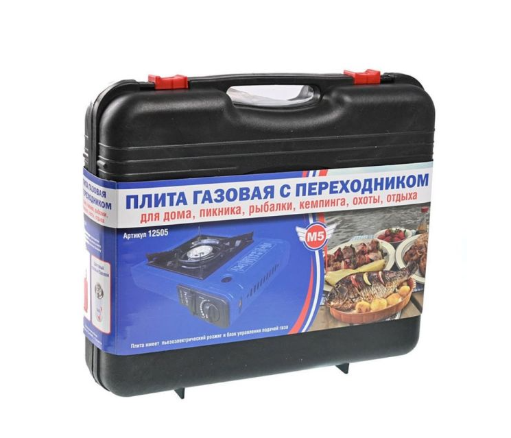 Настольная газовая плита Следопыт М5 - это один из лучших вариантов, который можно порекомендовать для использования как на домашней кухне, так и на кухне загородного дома, в дачном домике или во время отдыха на открытом воздухе. Для удобства транспортировки и хранения плита размещается в пластиковом кейсе. Простота и удобство в обращении, надежность конструкции - это, пожалуй, самые важные свойства настольных газовых плит "Следопыт". По своей конструкции эта плита очень похожа на те, что мы ежедневно используем в быту, но при этом имеет меньшие размеры. Плита оборудована одной горелкой с кольцевым образованием пламени, имеет пьезоэлектрический розжиг и блок управления подачей газа, а так же использует газ от бытовых газовых баллонов. Баллоны необходимо подключать через специальные понижающие редукторы. Для удобства транспортировки и хранения плита размещается в пластиковом чемодане (кейсе). В качестве топлива используются газовые смеси в баллонах с нажимным клапаном и цанговым захватом