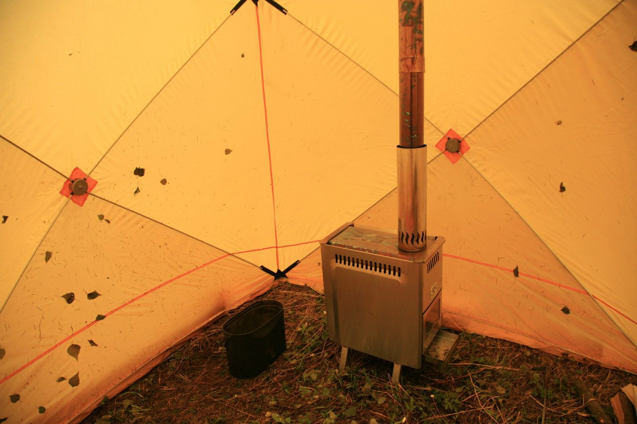 - Отмостки в нижней части палатки бани необходимо присыпать для уменьшения потери тепла