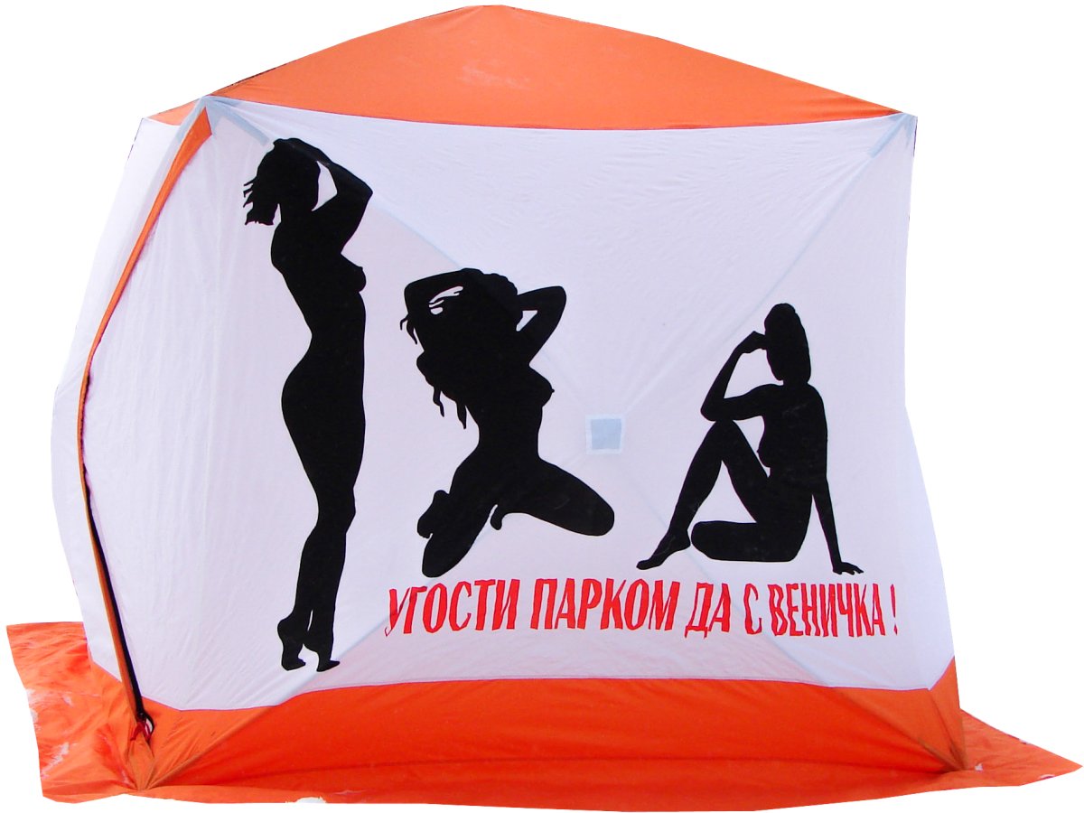 Баня походная каркасная с рисунком. Быстро и просто устанавливается за счет интегрированного каркаса.
