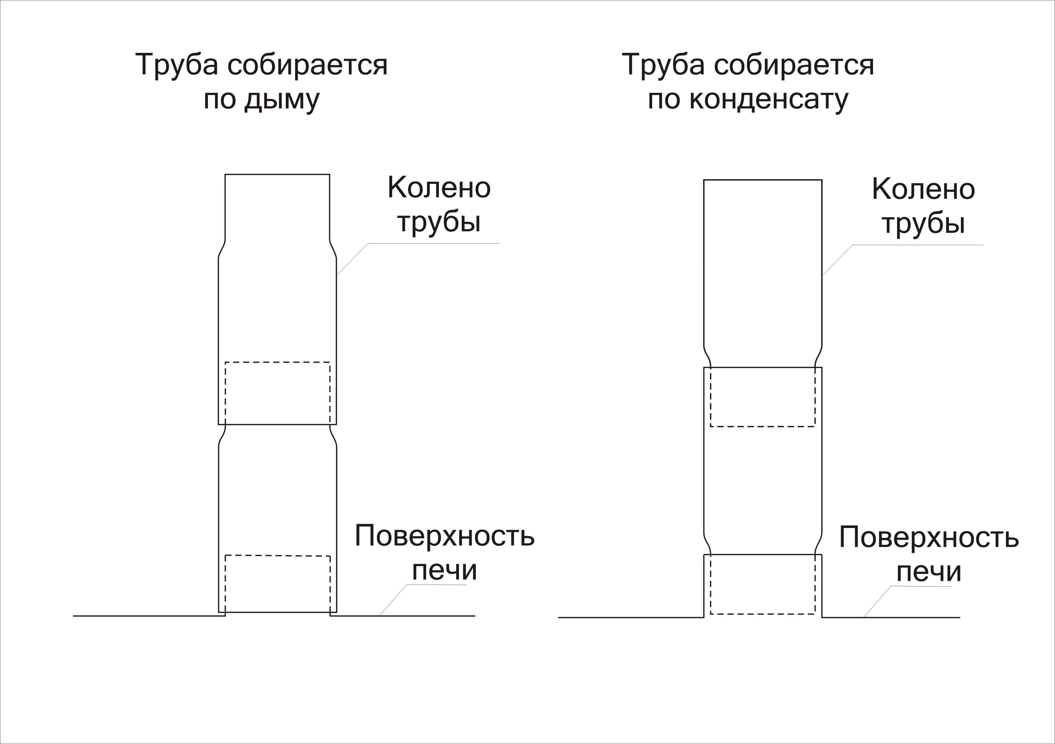 - Отличие трубы, собранной по дыму - с внутренней поверхности трубы осевший конденсат через стык попадает на внешнюю поверхность трубы и по ней стекает вниз к печке. От этого в палатке возникает дым.