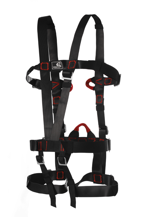 Страховочная система Vento Универсальная модифицированная - полная обвязка комбинированного типа. Представляет собой соединение поясной беседки и грудной обвязки. Может использоваться в любительском альпинизме, в парках аттракционов и на различных соревнованиях.