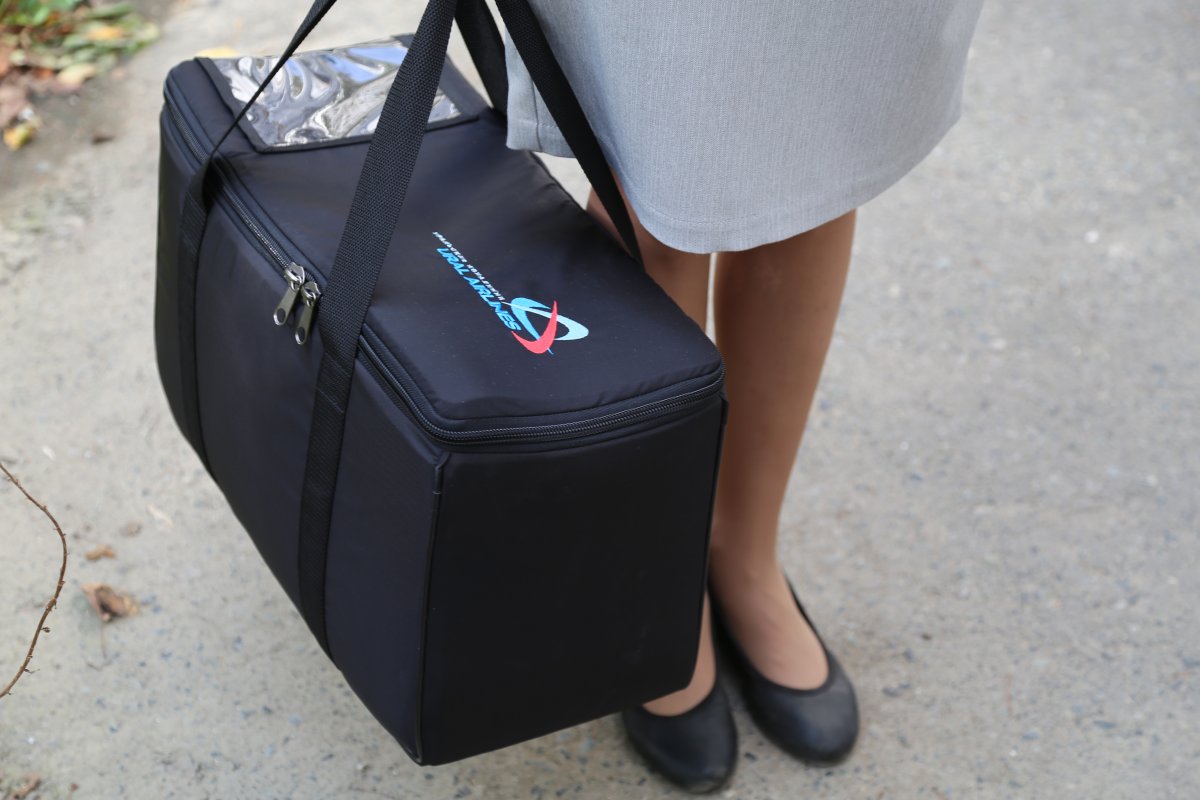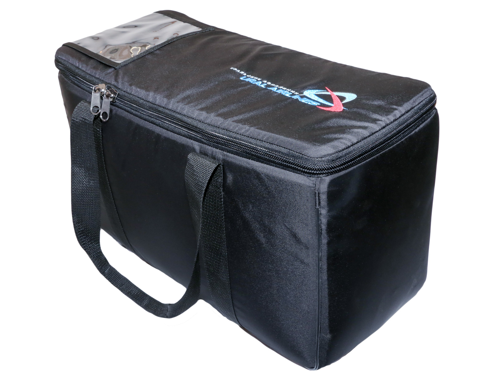 Сумка-кофр небольшого объема, со всех сторон сумка усилена вставками из пенополиуретана, что предотвращает деформацию сумки, и предохраняет содержимое сумки от механических повреждений. В дно сумки установлена вставка из пластика. Сумка имеет ручки для переноски; прочную и надежную молнию с двумя бегунками. На крышке сумки расположен логотип и карман из прозрачной пленки. На дне сумки нашиты пластиковые накладки. В швы вставлен пластиковый кант для предохранения углов от истирания.