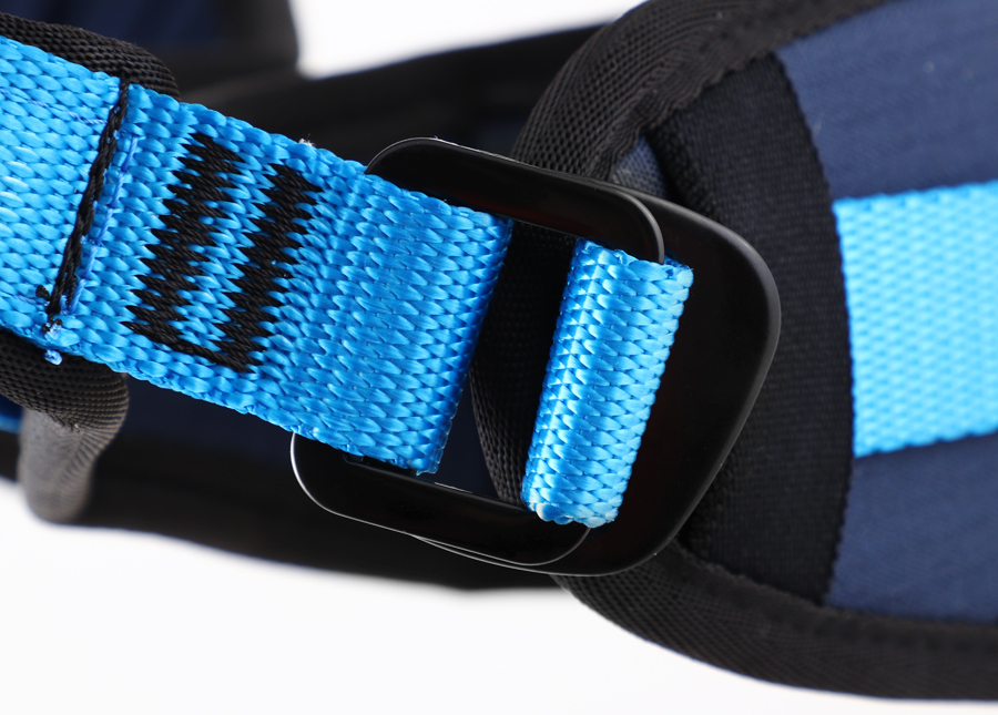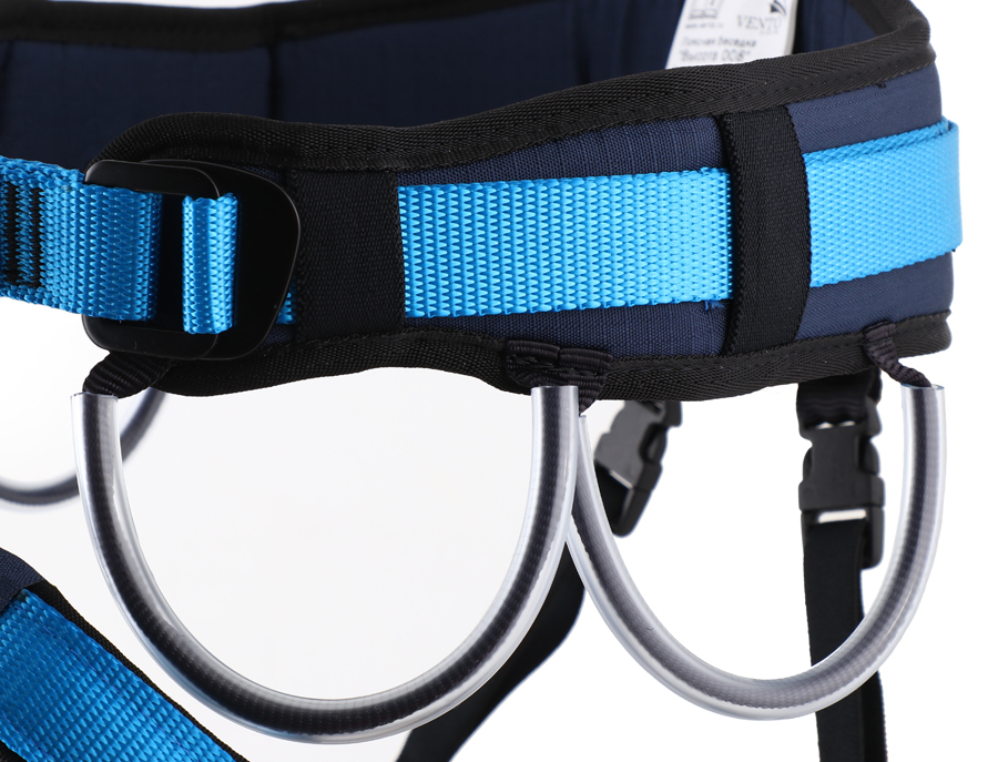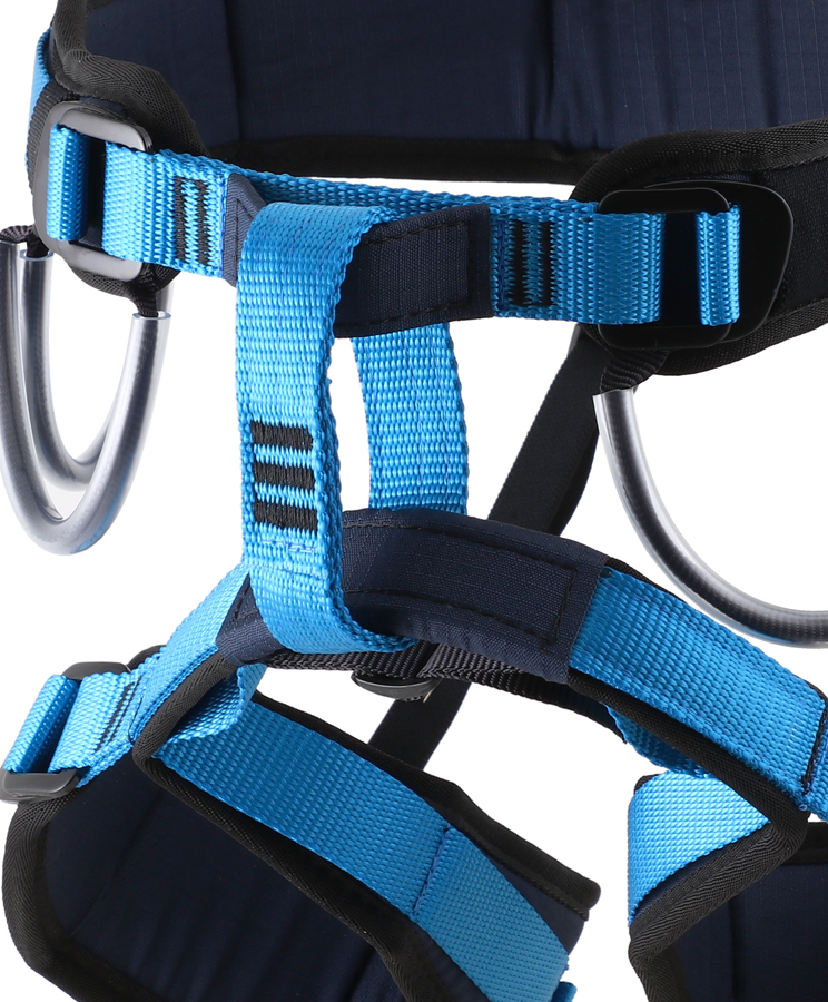 • Две регулируемые стальные пряжки на поясе для центрирования страховочного кольца