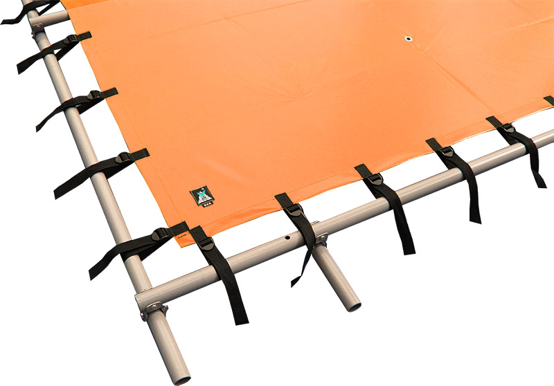 - Палуба прикрепляется к раме катамарана простым и надежным способом, с помощью строп с пряжками