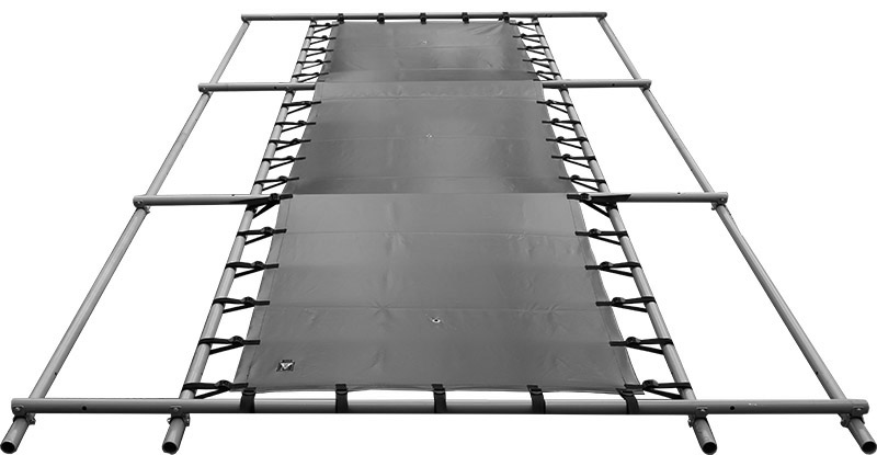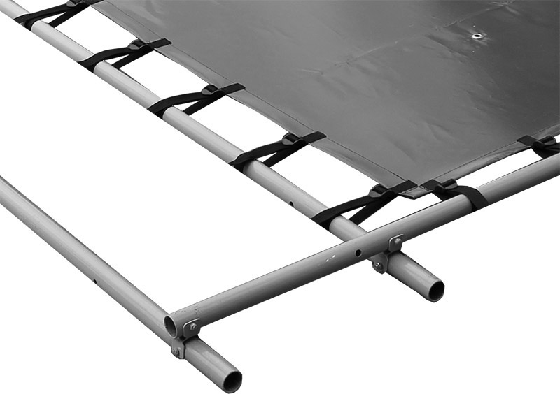 - Палуба растягивается на внутренние продольные трубы рамы, что позволяет устанавливать пристежные, спортивные или комфортные сидения для катамарана