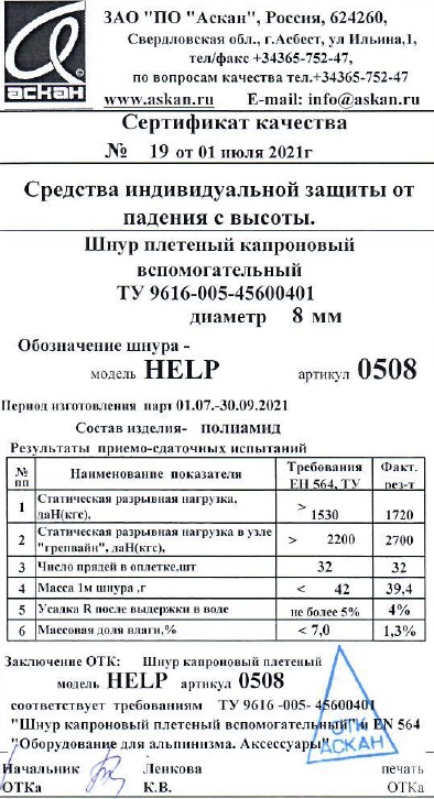 Шнур вспомогательный страховочный капроновый плетеный, количество прядей в оплетке — 32, в т.ч. цветных — 32.