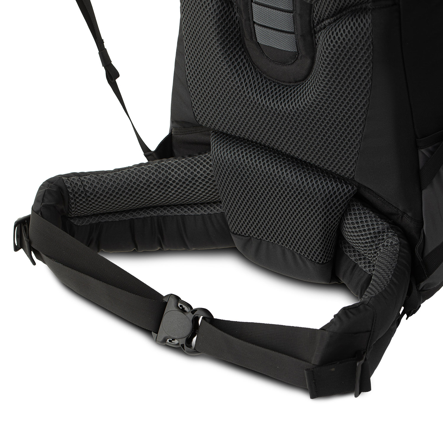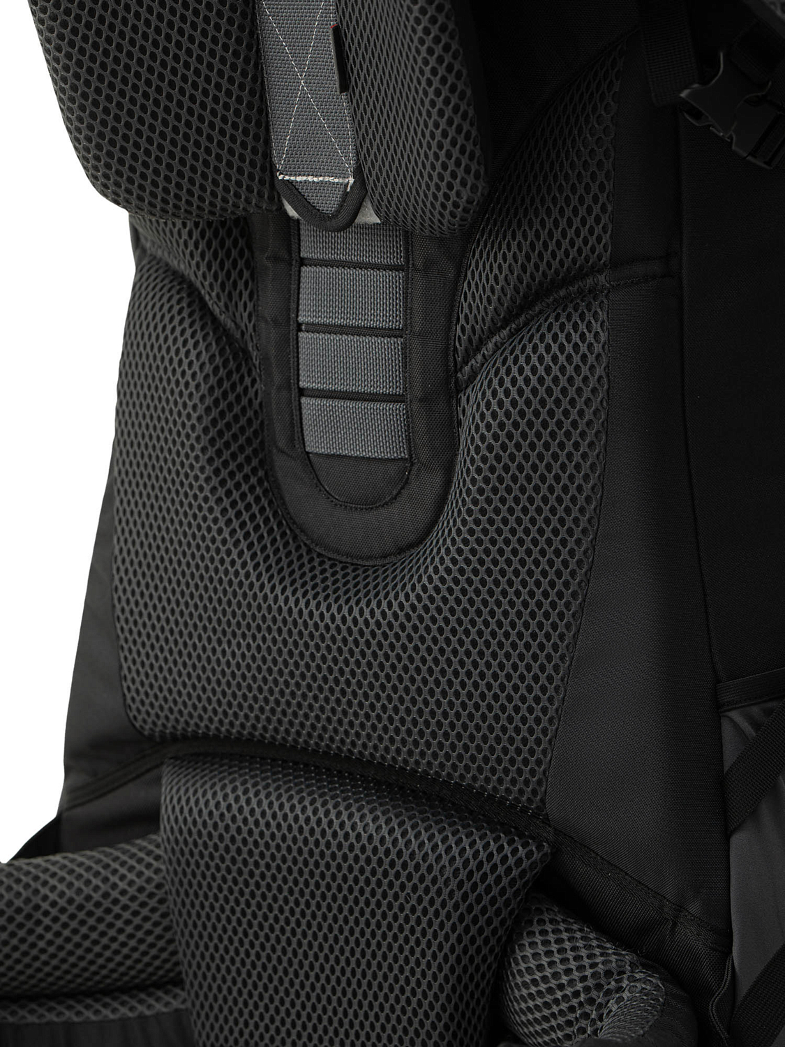 Формованная пена в лямках и поясе предотвращает давление строп и хорошо распределяет вес. Высоту подвеса лямок можно отрегулировать под рост туриста. Пояс съёмный и оснащён двойной пряжкой, которая позволяет быстро и точно подогнать посадку.