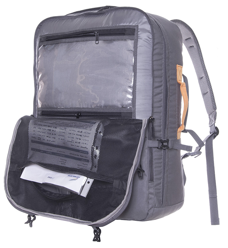 Удобный рюкзак АЭРО 44, по форме напоминающий чемодан, с двумя вместительными отделениями, рекомендован для использования в качестве ручной клади при авиаперелетах.