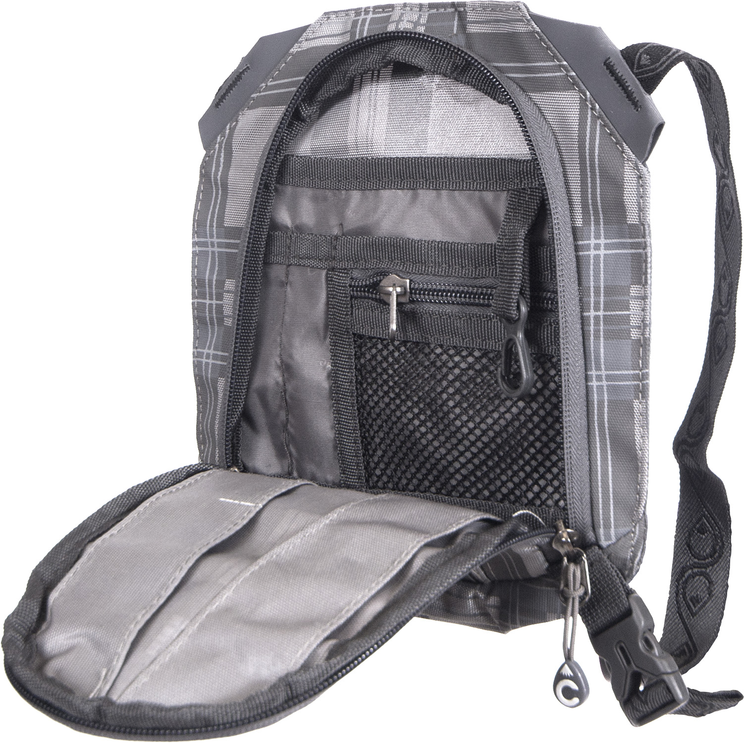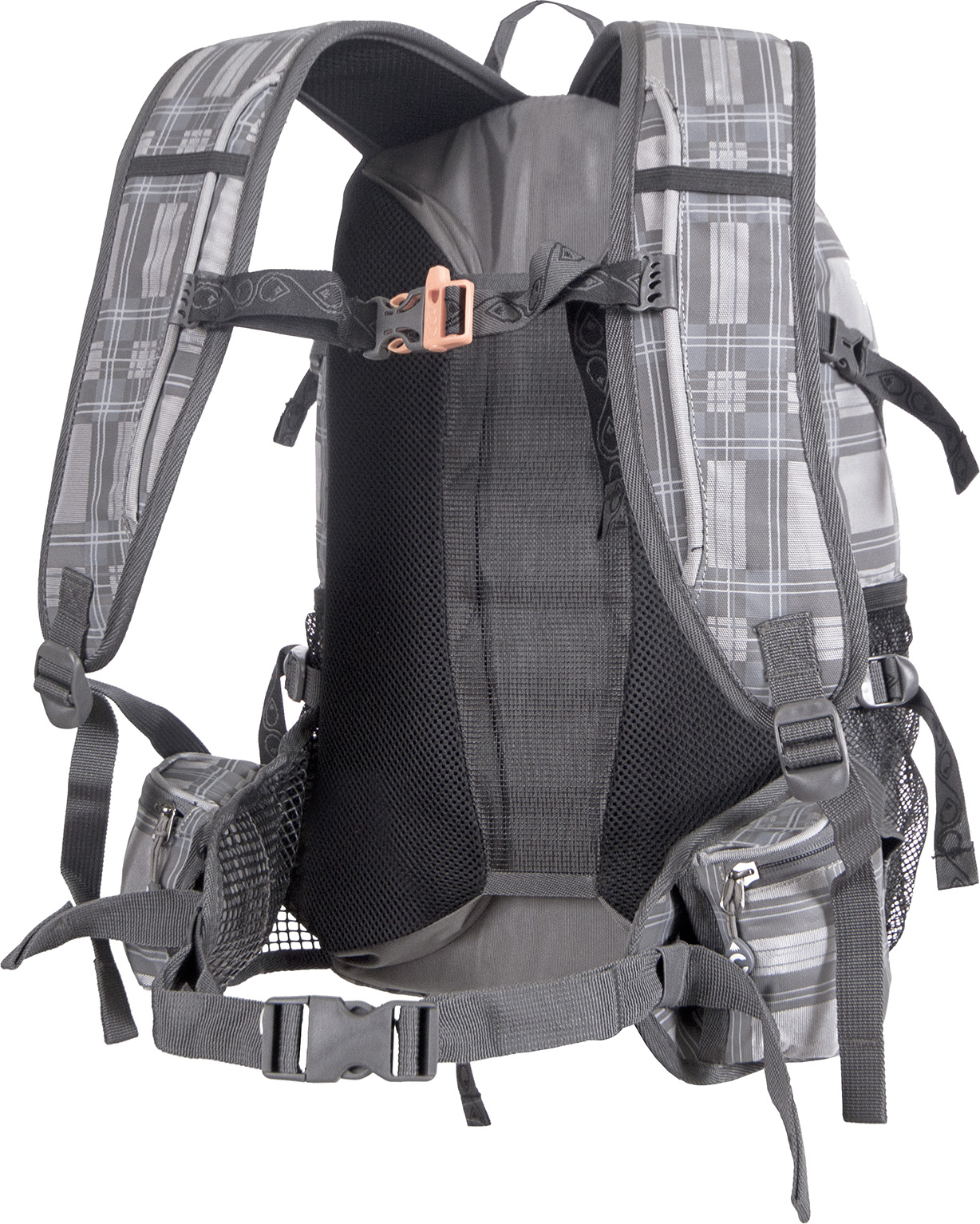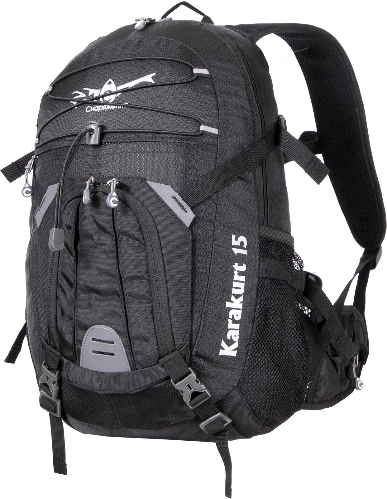 Съемный карман-сумка на фасаде, под которым можно крепить каску, ветровку и пр. Также может использоваться отдельно.