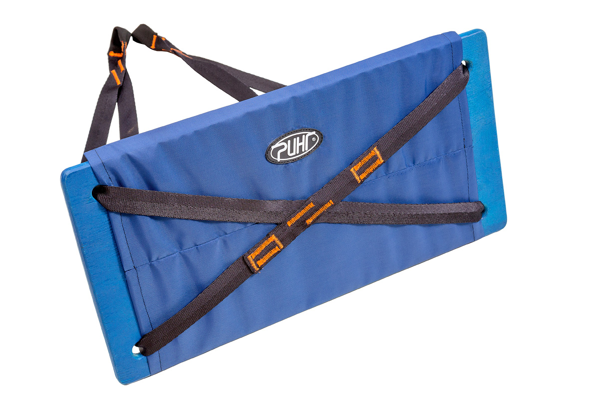 Сидушка альпинистская имеет простую конструкцию и легкий вес. В основе фанера 12 мм, обшитая качественной тканью.