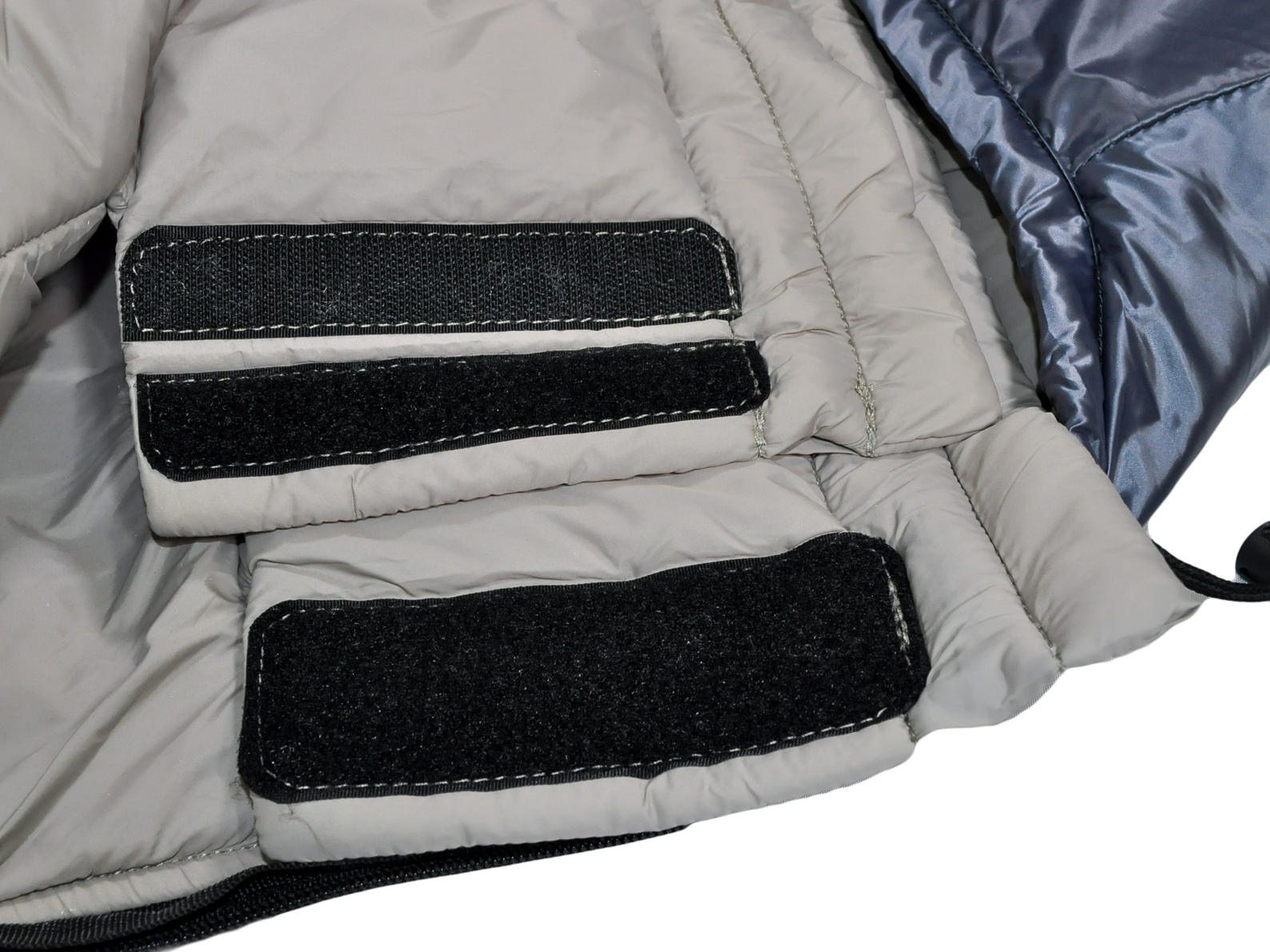 - Молния с двумя бегунками. Нижний бегунок позволяет расстегнуть молнию в области ног для вентиляции