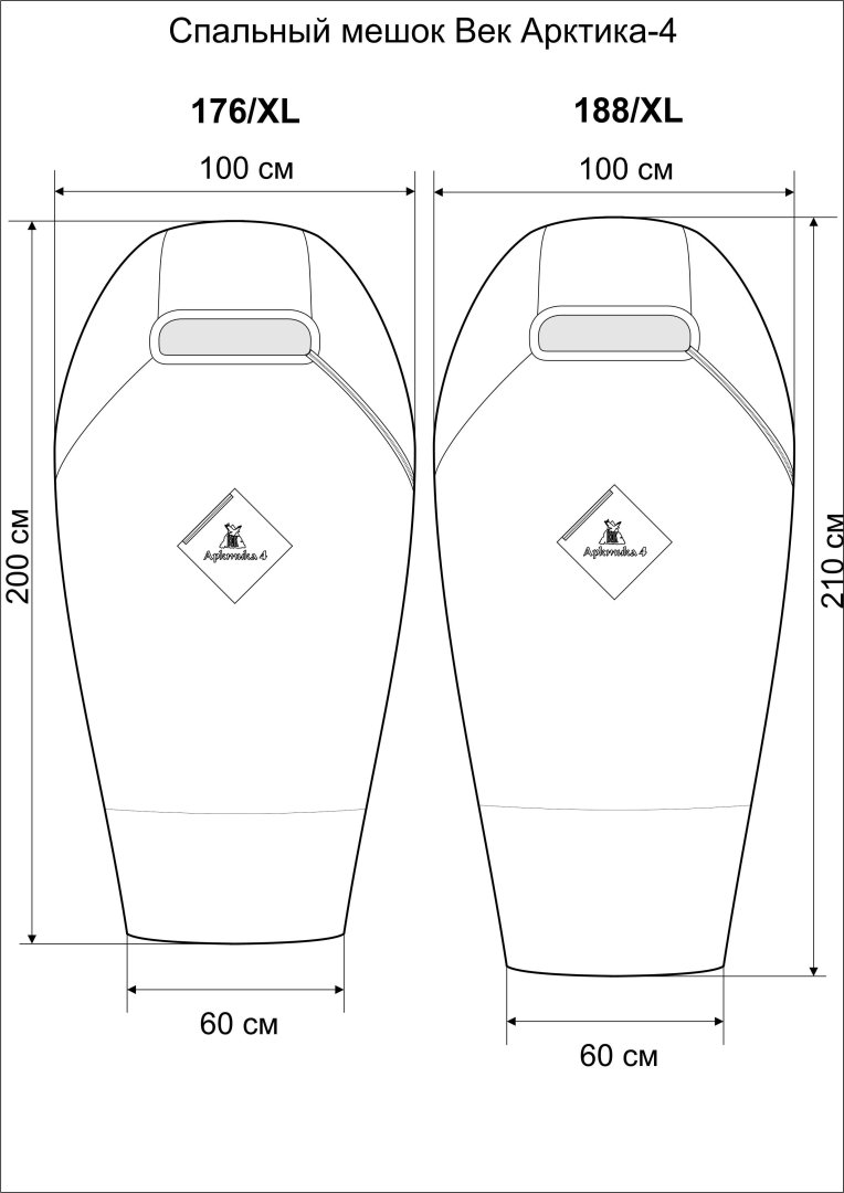 Размеры 188/XL (размер 54-56, рост 188): 210 х 100 х 60 см