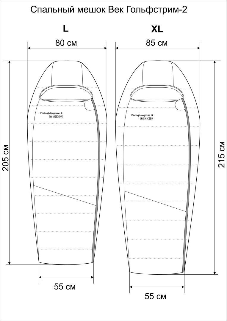 Размеры XL(размер 54-56): 215 х 85 х 55 см
