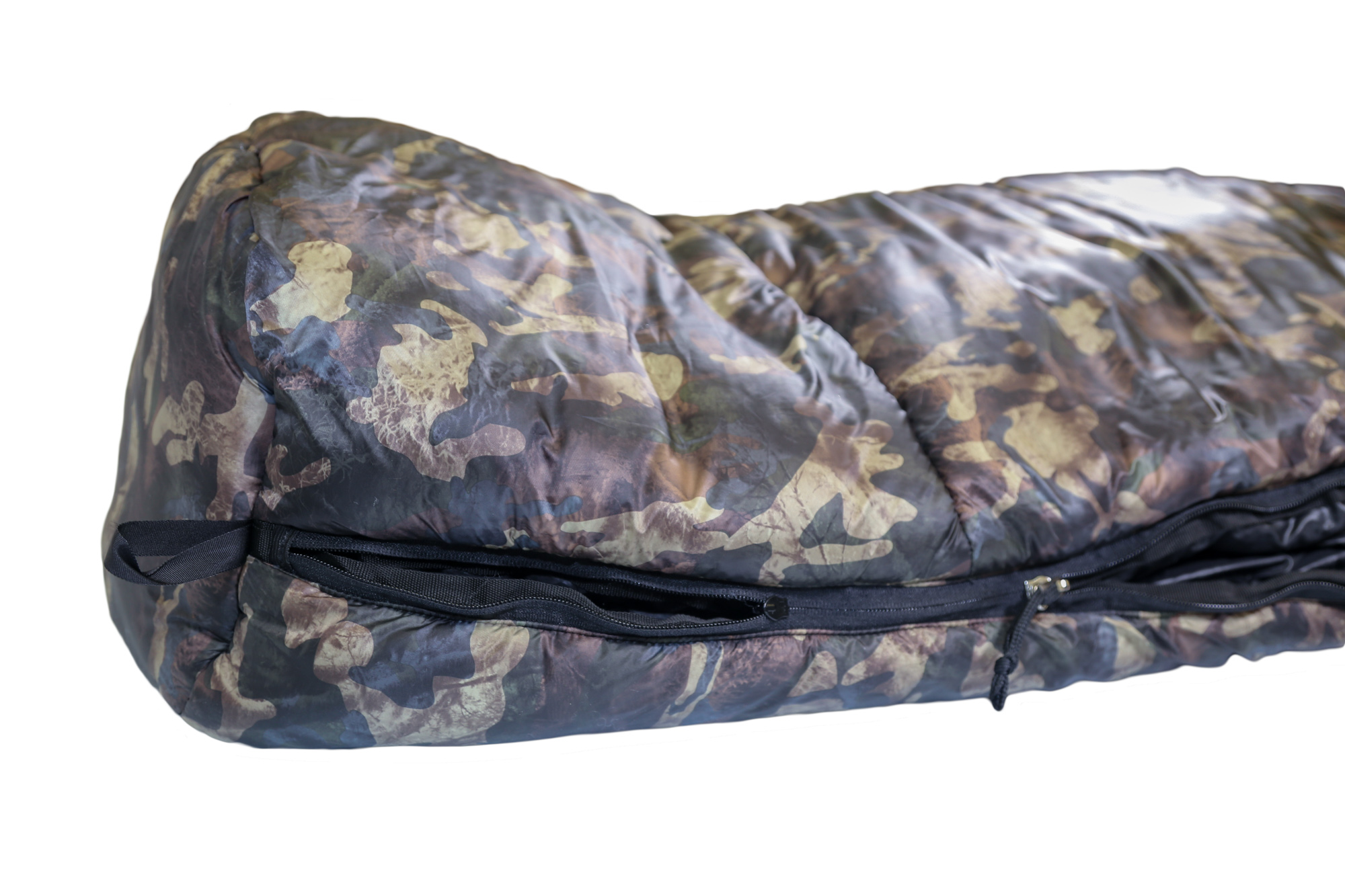 Спальник-кокон для удобства и комфорта во время похода или экспедиции. Рассчитан на лето и межсезонье. Отлично защищает от ветра и холода. Камуфляжная расцветка.