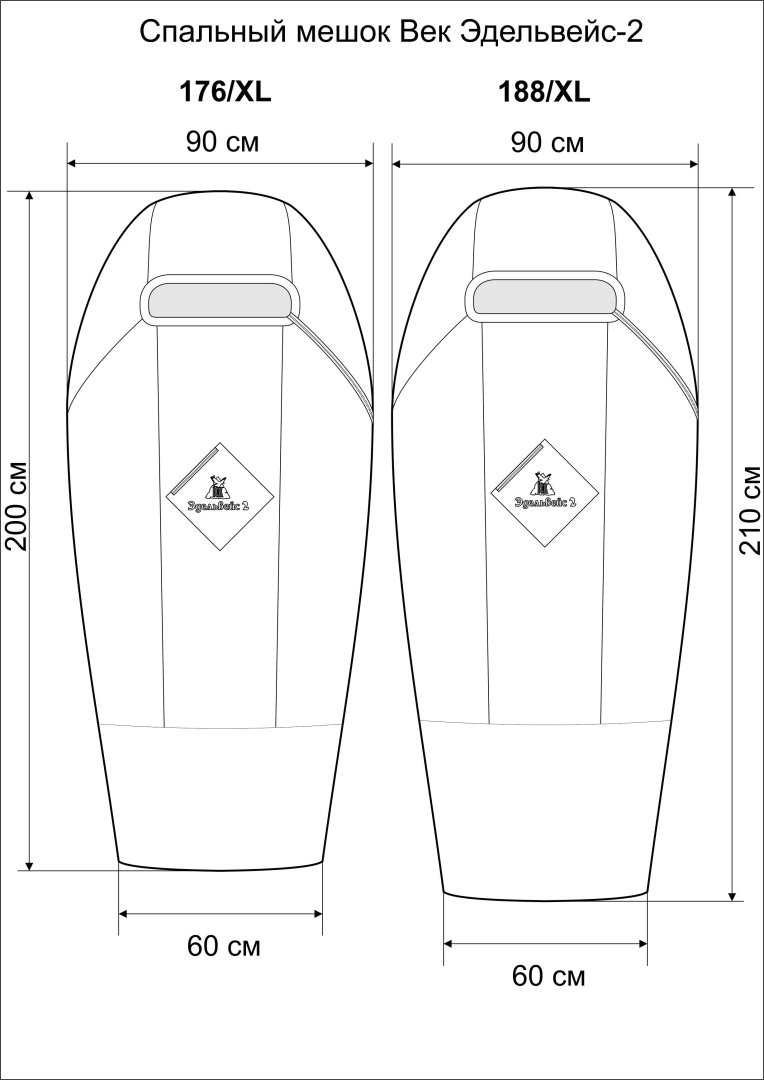 Размер 188/XL (размер 54-56. рост 188см): 210 х 90 х 60см