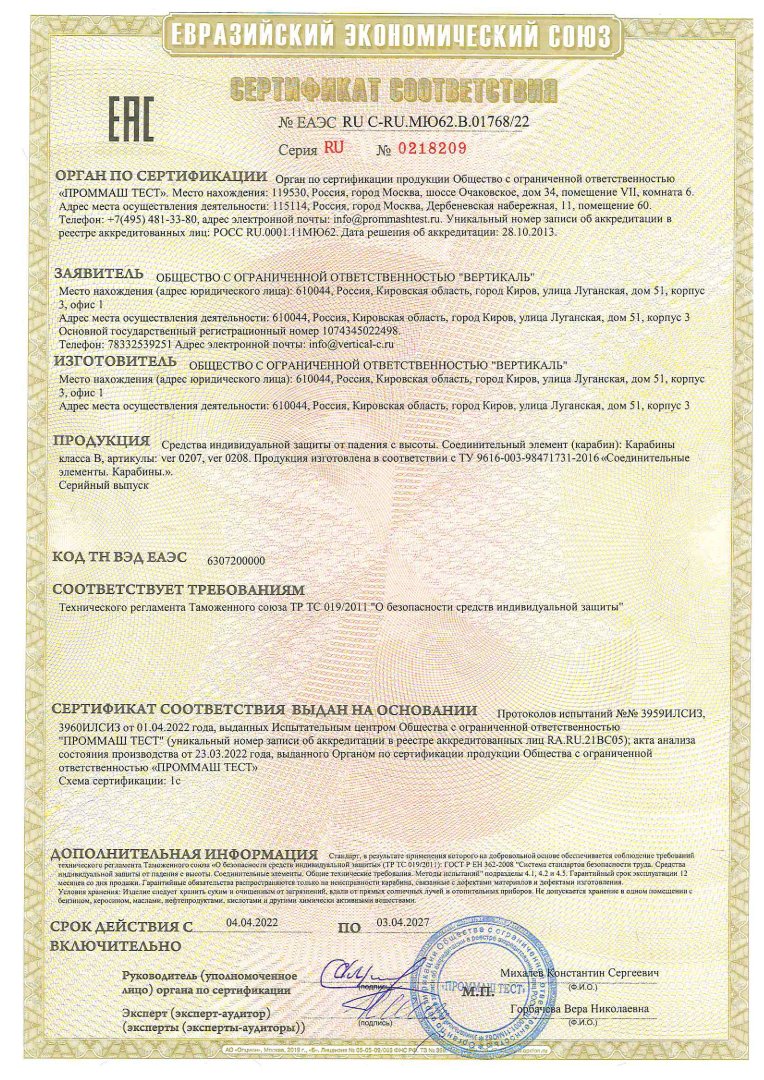 Стальной карабин Vertical является соединительным звеном между несколькими предметами. Без него невозможно представить занятия альпинизмом, скалолазанием и спелеологией. Может применяться для организации самостраховки, станций, присоединения страховочных устройств и т.д. Симметричная форма карабина исключает отклонение от основной оси при нагрузке, что особенно важно при работе с блок-роликами и устройствами с двумя симметриными щечками. Резьбовая муфта максимально снижает риск самопроизвольного раскрытия карабина.
