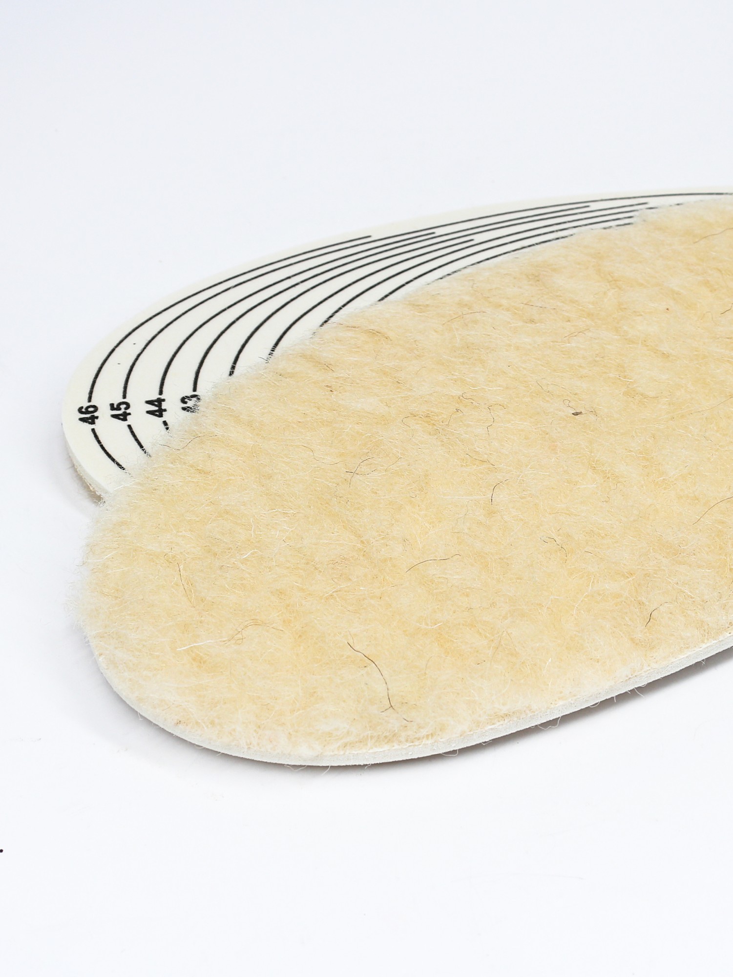 Слой из натуральной овечьей шерсти эффективно и надолго сохраняет тепло, впитывая излишнюю влагу обеспечивает комфорт. Эластичный и упругий латекс гарантирует мягкость и удобство во время ходьбы, а так же дополнительную термоизоляцию.