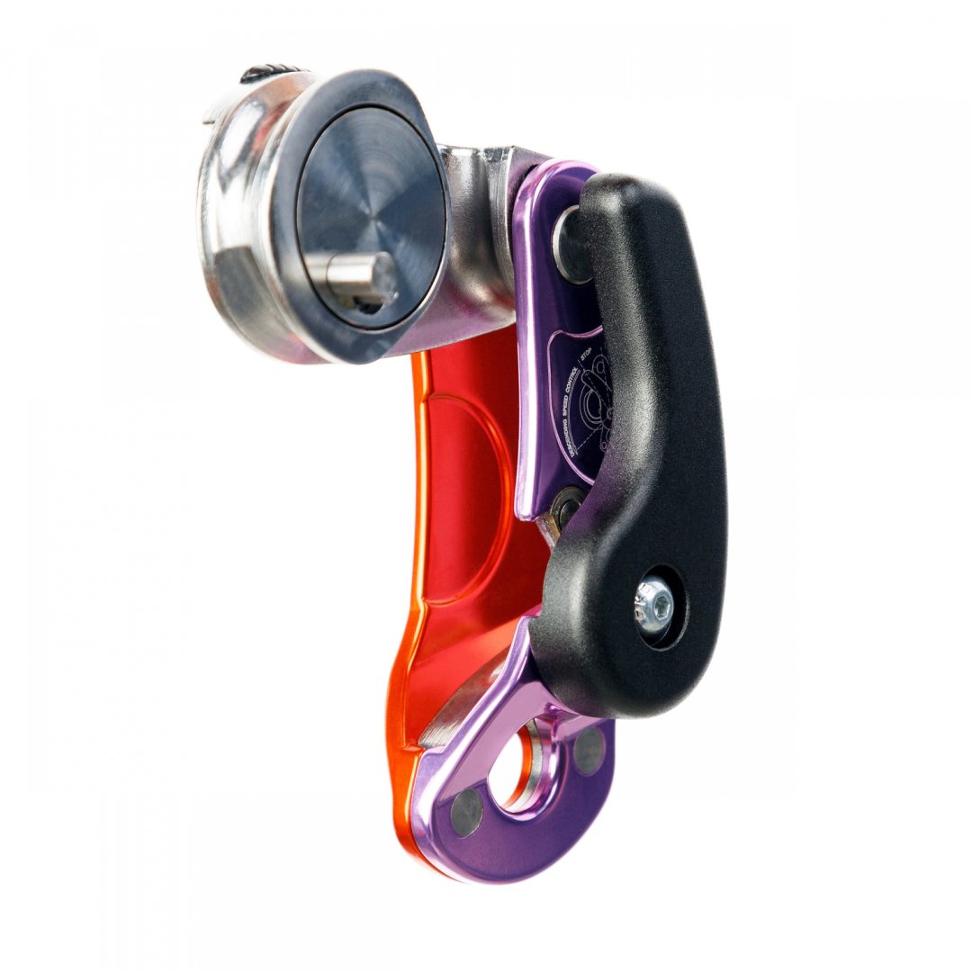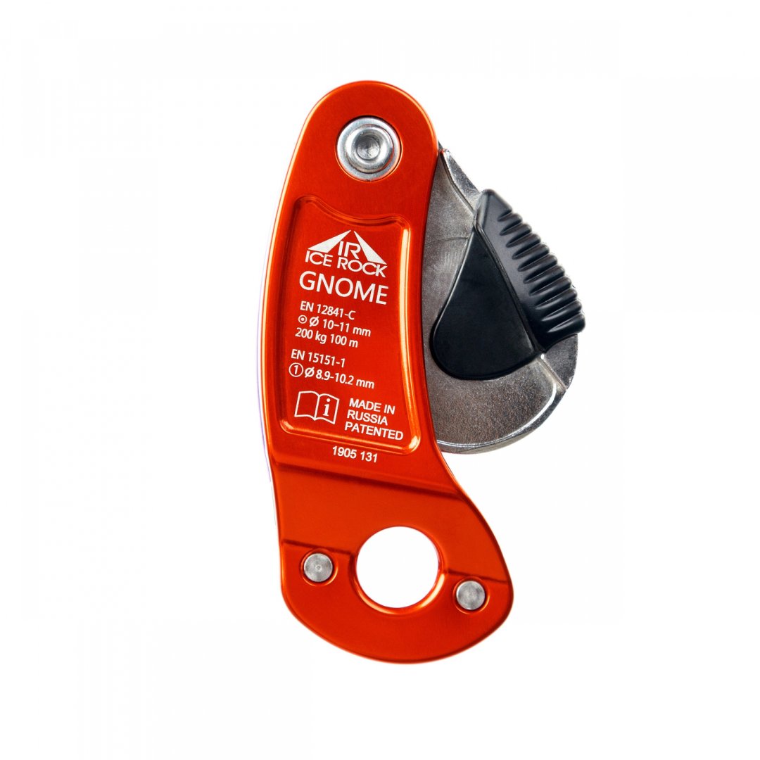 Самоблокирующееся спусковое устройство Vertical GNOME new. Улучшена эргономика за счёт щёчек, выполненных горячей штамповкой, увеличен ресурс за счёт стальной накладки в области максимального трения и более удобная заправка верёвки за счёт ограничителя откидывания кулачка. Имеет самоблокировку. Запатентованная технология адаптации к диаметру веревки и весу человека. Разблокировка возможна при любых нагрузках, при этом требуется минимум усилий.