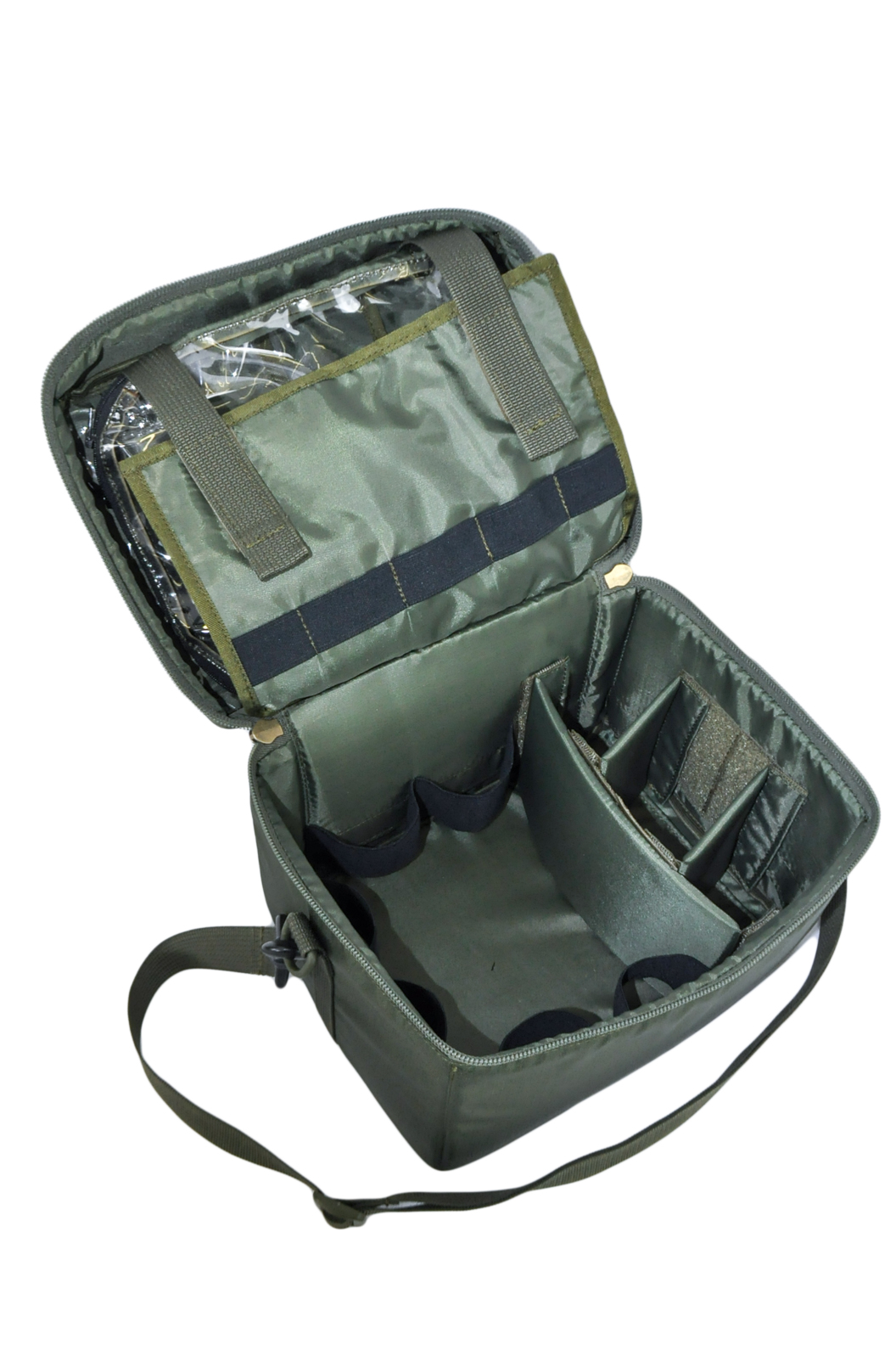 - Множество кармашков внутри и перегородки с пенополиуретановыми вставками, для удобного размещения всего необходимого для оказания первой медицинской помощи