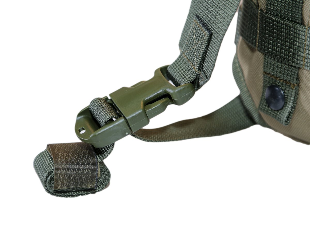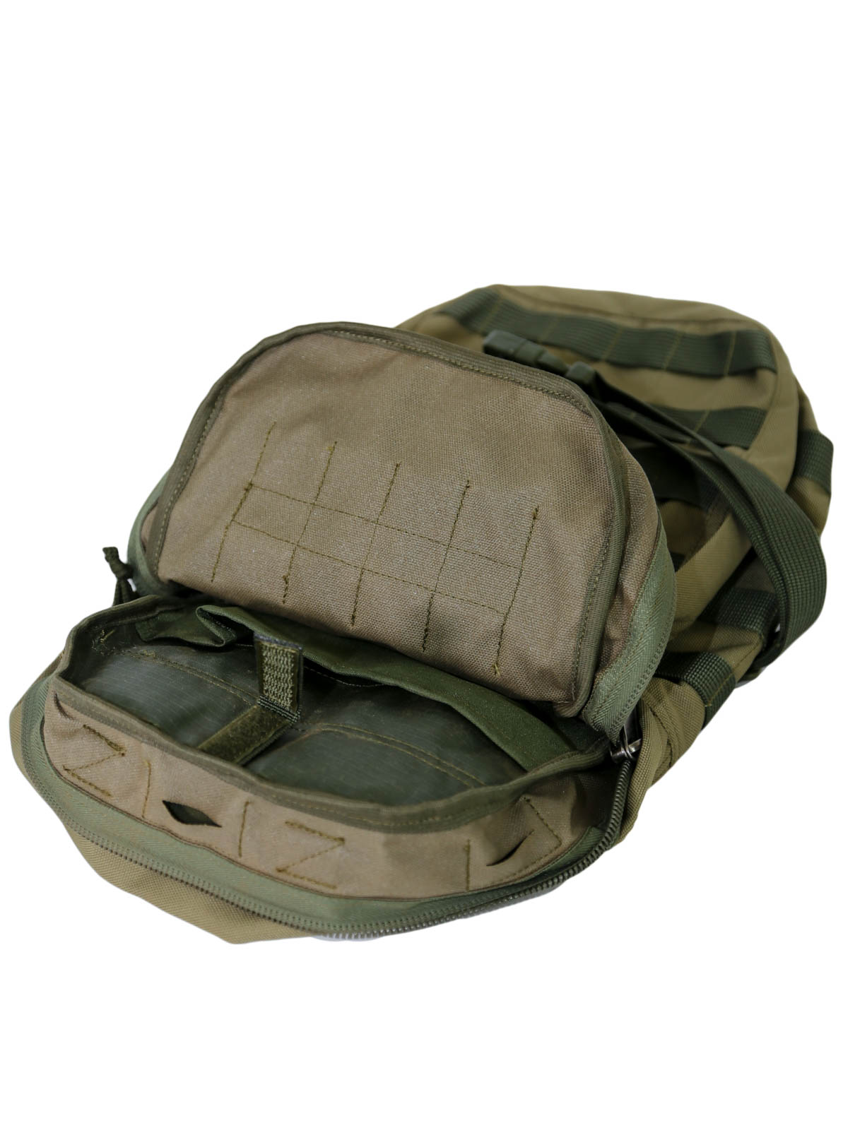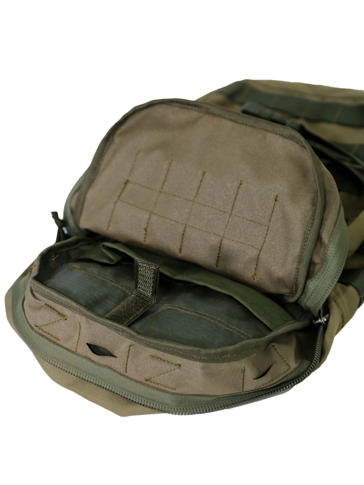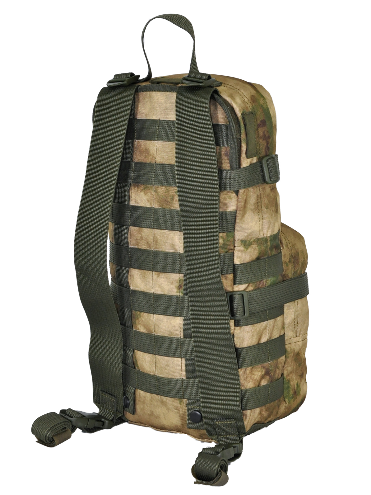 - На боках и задней стенке система крепления Molle. Универсальная система крепления позволяет прикреплять дополнительные подсумки и любое другое снаряжение на рюкзак, а также рюкзак прикрепить к ременно-поясной системе