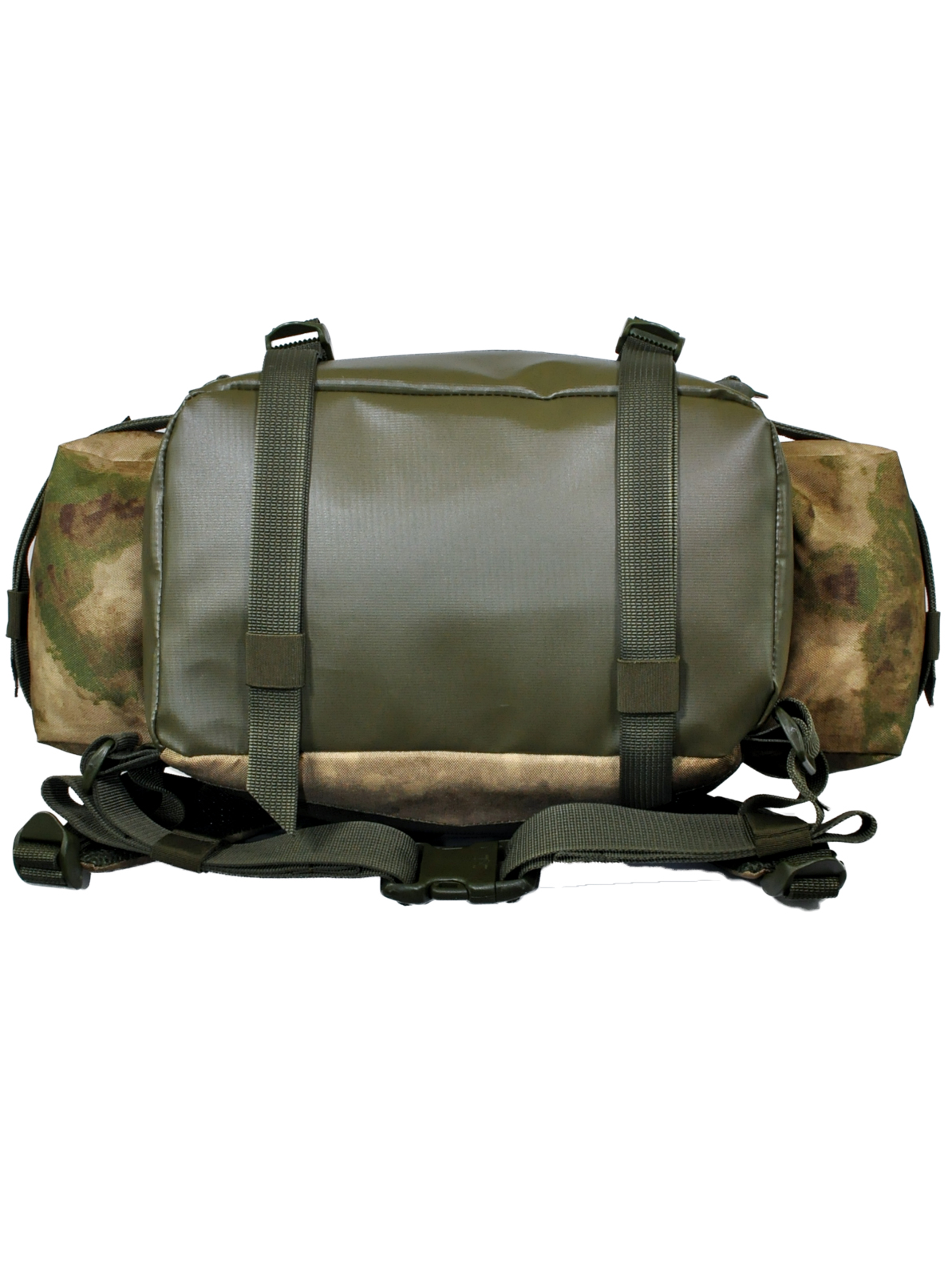 - На передней части рюкзака система Molle для прикрепления дополнительных подсумков