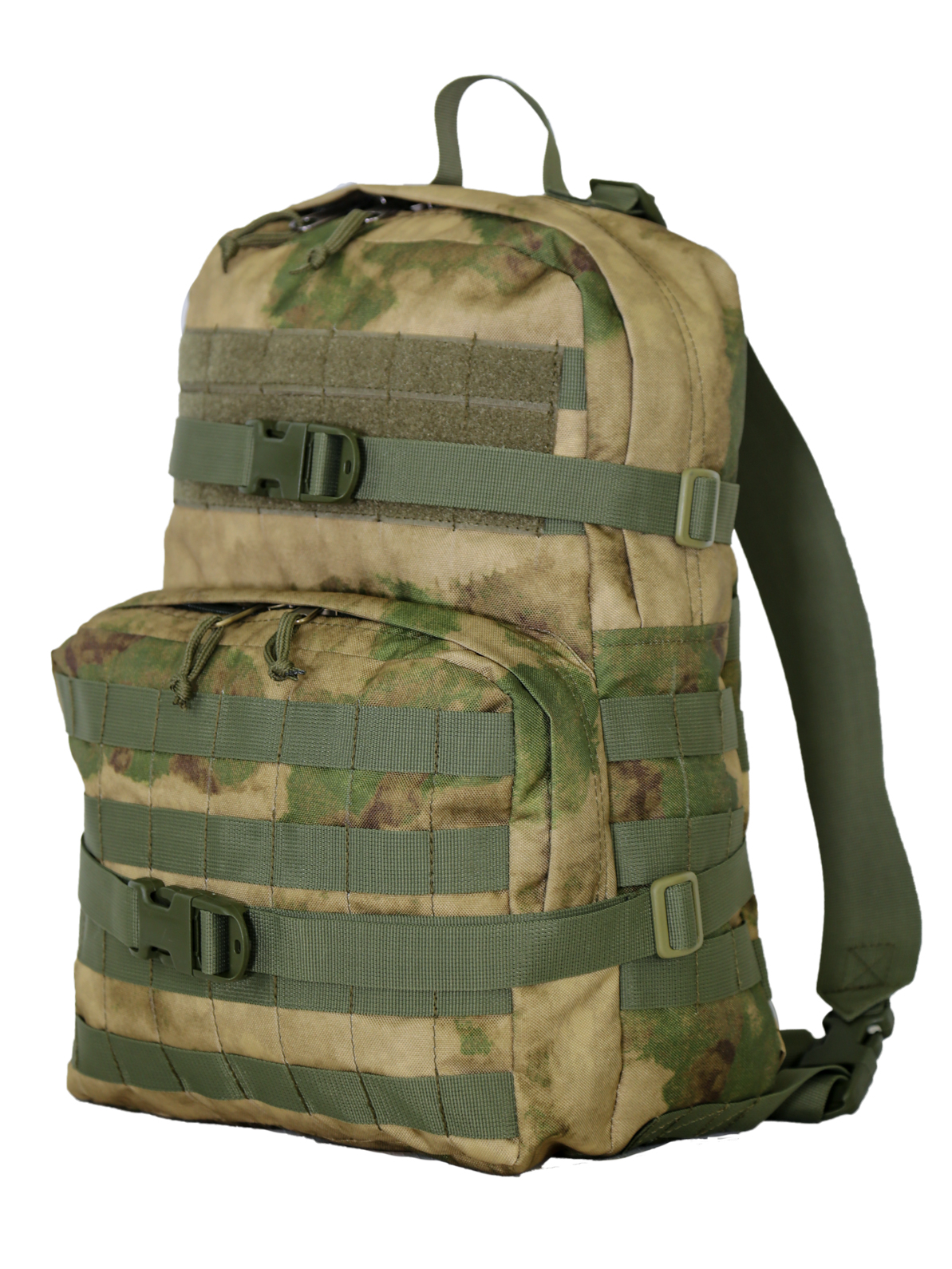 - В комплект Рюкзака Пересвет входит небольшой штурмовой-суточный рюкзак. Внутри основного отделения карман для размещения питьевой системы. Передний объемный карман с системой Molle. Плечевые лямки из стропы при необходимости убираются в специальное отделение. Две наружных стропы для прикрепления дополнительного снаряжения к штурмовому рюкзаку