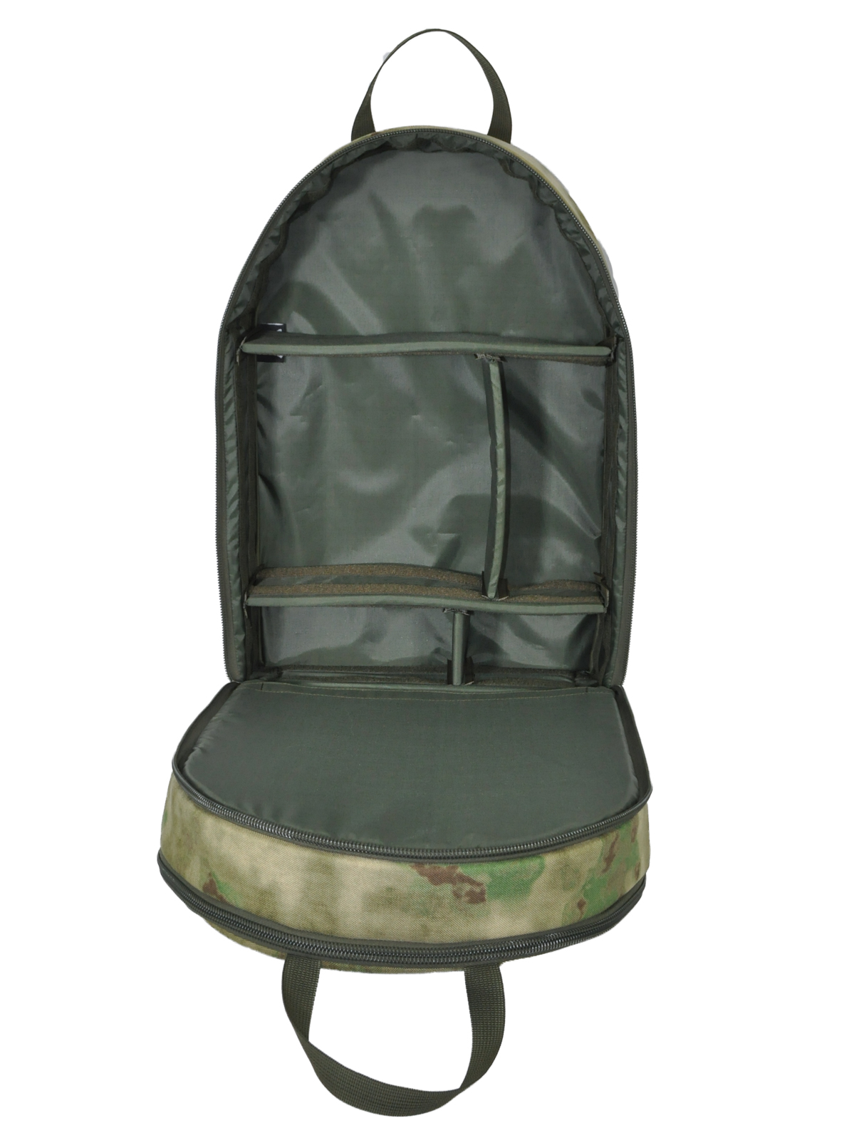 - Рюкзак имеет два отделения, одно из которых разделено съемными перегородками