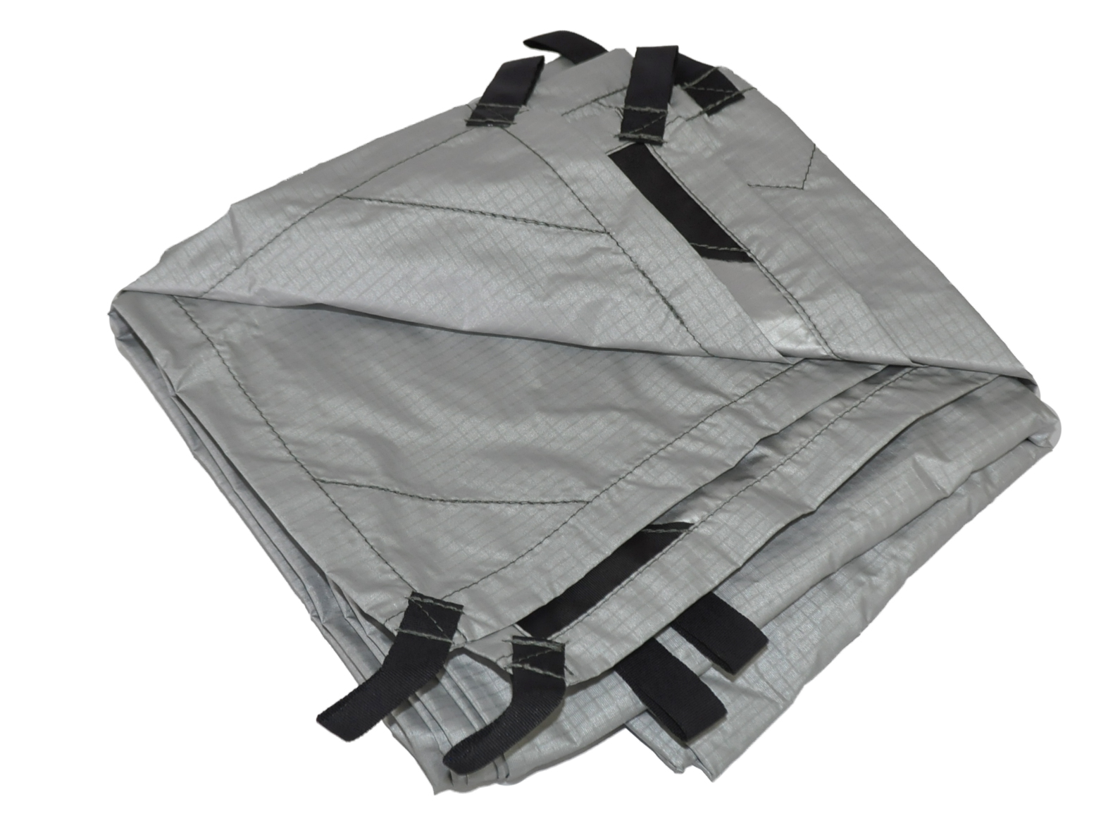 - По периметру тента расположены петли для оттяжек. Места пришивания петель усилены дополнительным слоем ткани