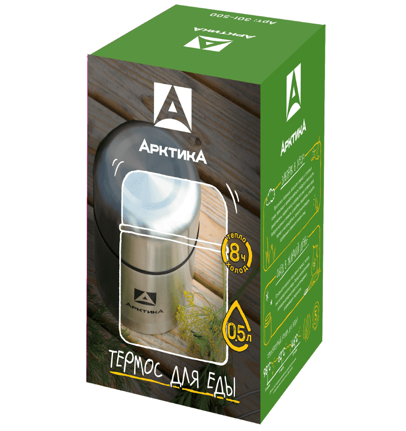Термос Арктика 301 0,5 л с широким горлышком специально предназначен для транспортировки еды. Под рукой всегда будет горячий суп или второе блюдо. Термос выполнен из нержавеющей стали, полированное покрытие устойчиво к появлению пятен. Крышку-чашку можно использовать вместо тарелки, а широкое горлышко позволяет легко мыть термос.