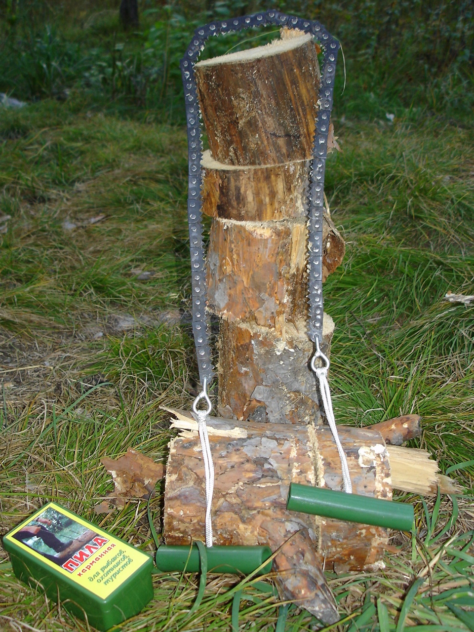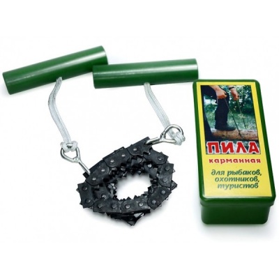 Пила карманная цепная станет полезным приобретением для любого туриста. Пила компактных размеров на цепочке всегда будет под рукой. Распиливает бревна любой толщины легко и быстро. С ней может управиться даже один человек!