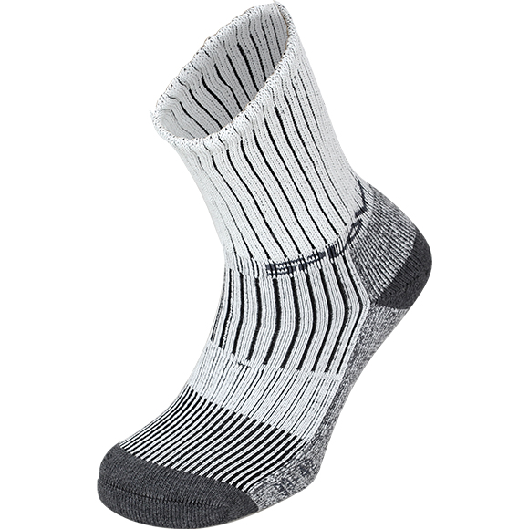 Выраженная «зональность» плетения, характерная для треккинговых и спортивных носков, сочетается в них с многокомпонентным составом полотна, из которого они изготовлены.