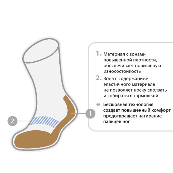 Любителям побродить по лесам и туристским тропам или тем, кто и в городе предпочитает тяжелую обувь, понравится этот легкий, бюджетный вариант. Форма носков, индивидуальная для правой и левой стоп, а также отсутствие швов снижают вероятность того, что ботинки будут натирать или намнут ноги. Различные волокна, входящие в материал из которого изготовлены носки, играют каждое свою роль, взаимно дополняя друг друга. Благодаря волокнам COOLMAX, влага отводится с поверхности стопы, а хлопок «дышит» и легко впитывает влагу, спандекс добавляет эластичности, а полиэстер прочности. Носки приятные, мягкие, легко тянутся и плотно сидят по ноге.