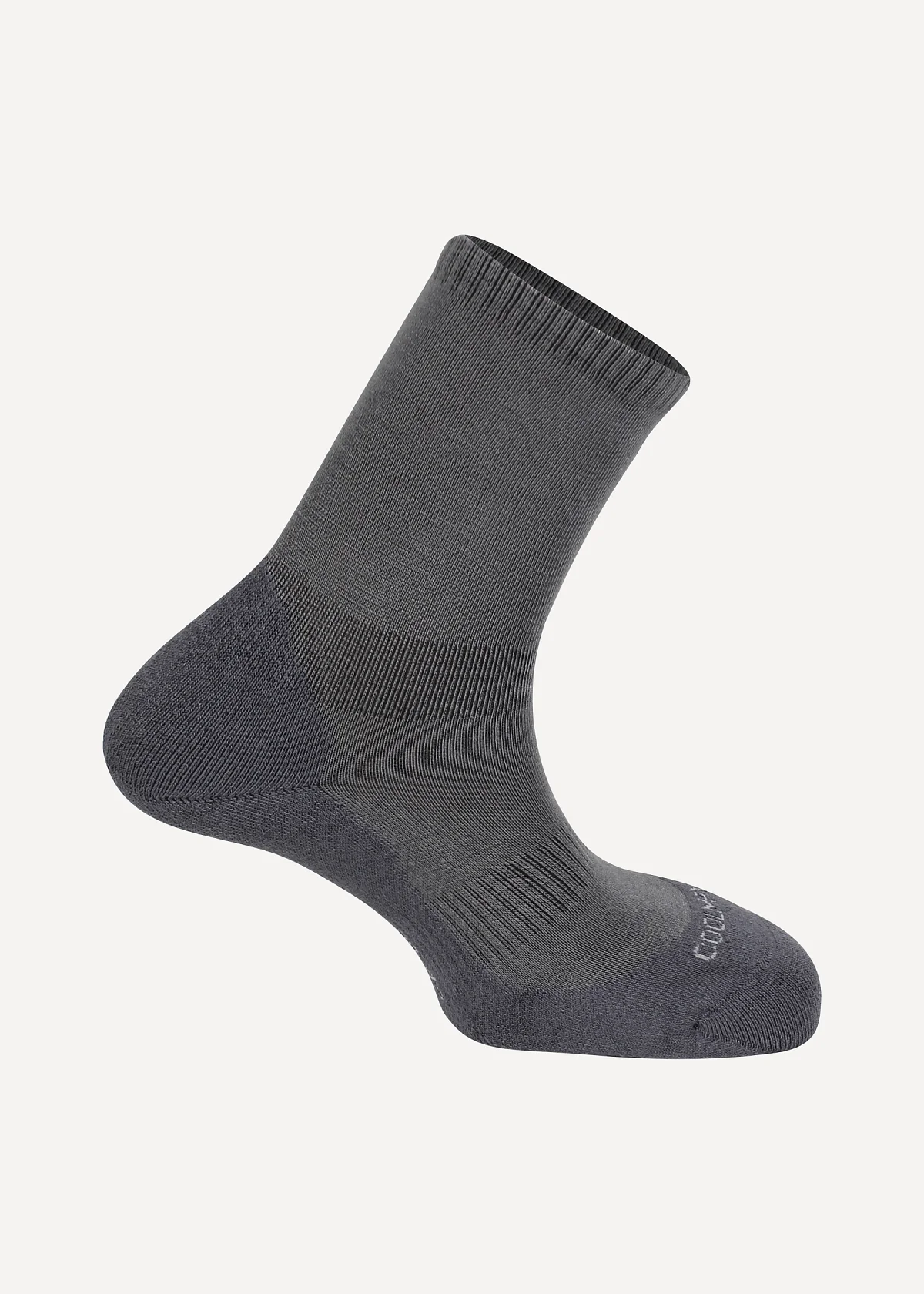 Уплотненная подошва повышает прочность носков и предотвращает скольжение стопы внутри обуви. Эластичные вставки надежно фиксируют носок на ноге, исключая его сбивание во время движения. Всё, что вы цените в толстых треккинговых носках, но в легком исполнении.