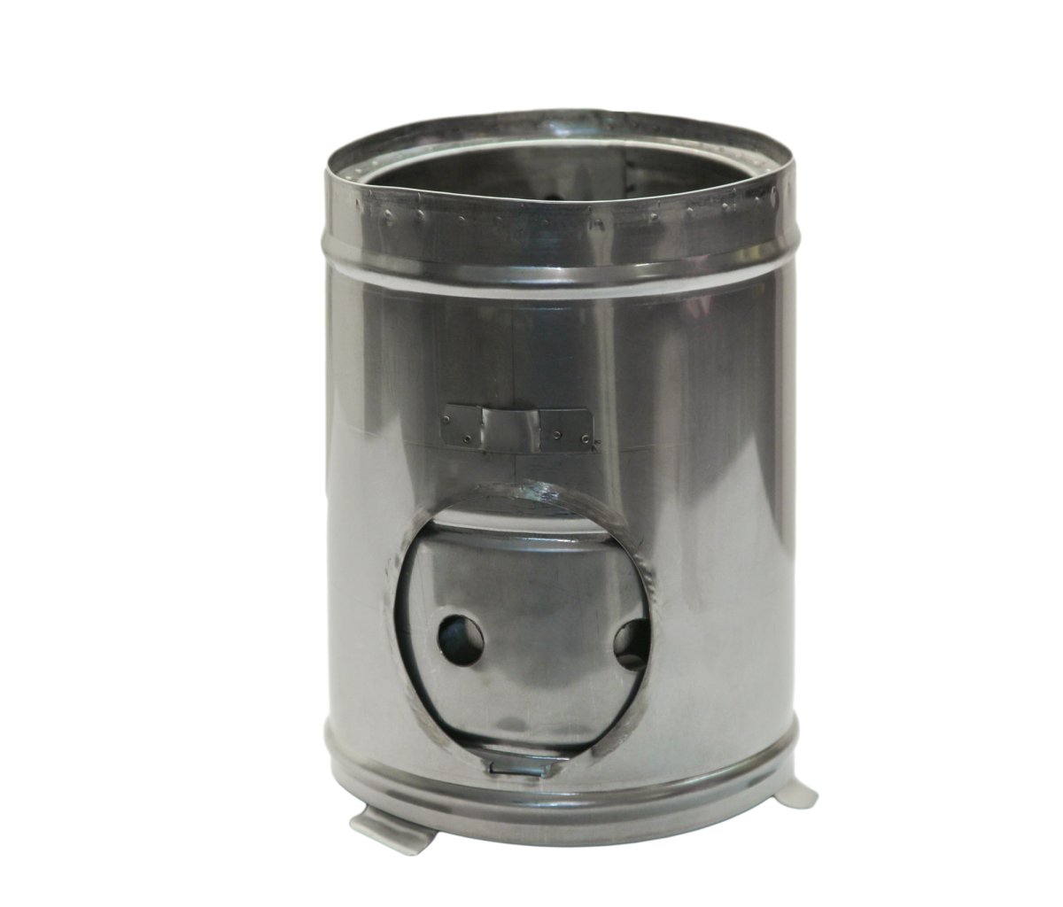 - Состоит из двух частей: двустенной пиролизной камеры сгорания и верхней части с окном для подачи топлива