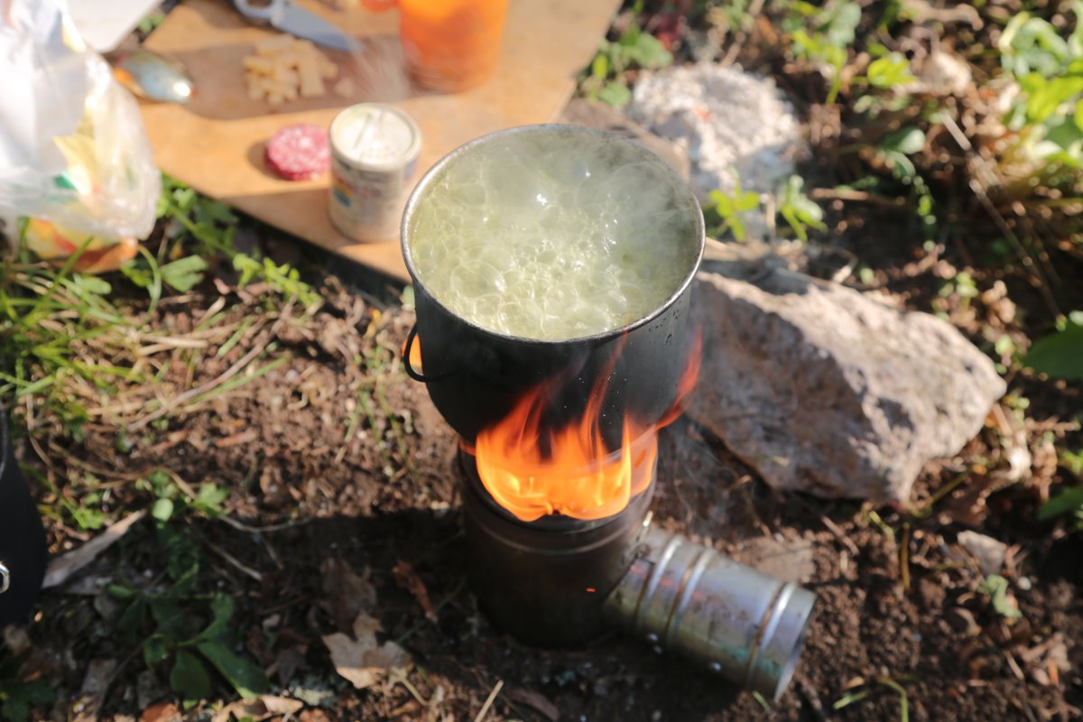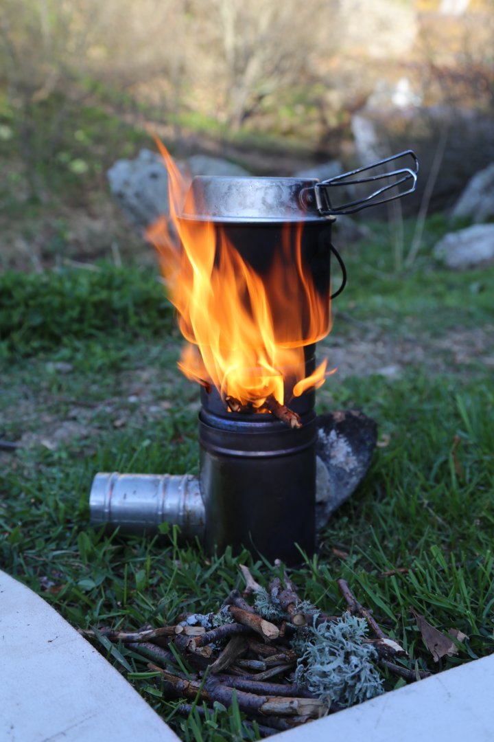 - Высокий КПД, экономичный расход топлива, дров требуется меньше, чем на костре. Топливом для печки служат щепки, сучки, шишки и т.д. В ней нельзя сжигать пластмассу или другой пластиковый мусор