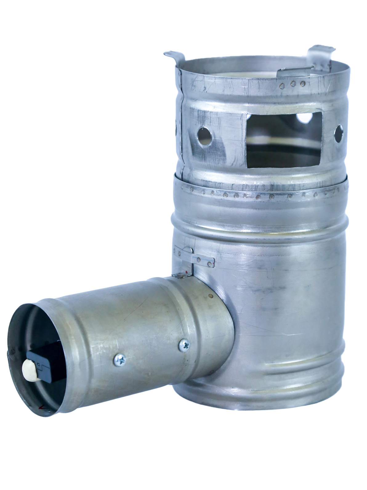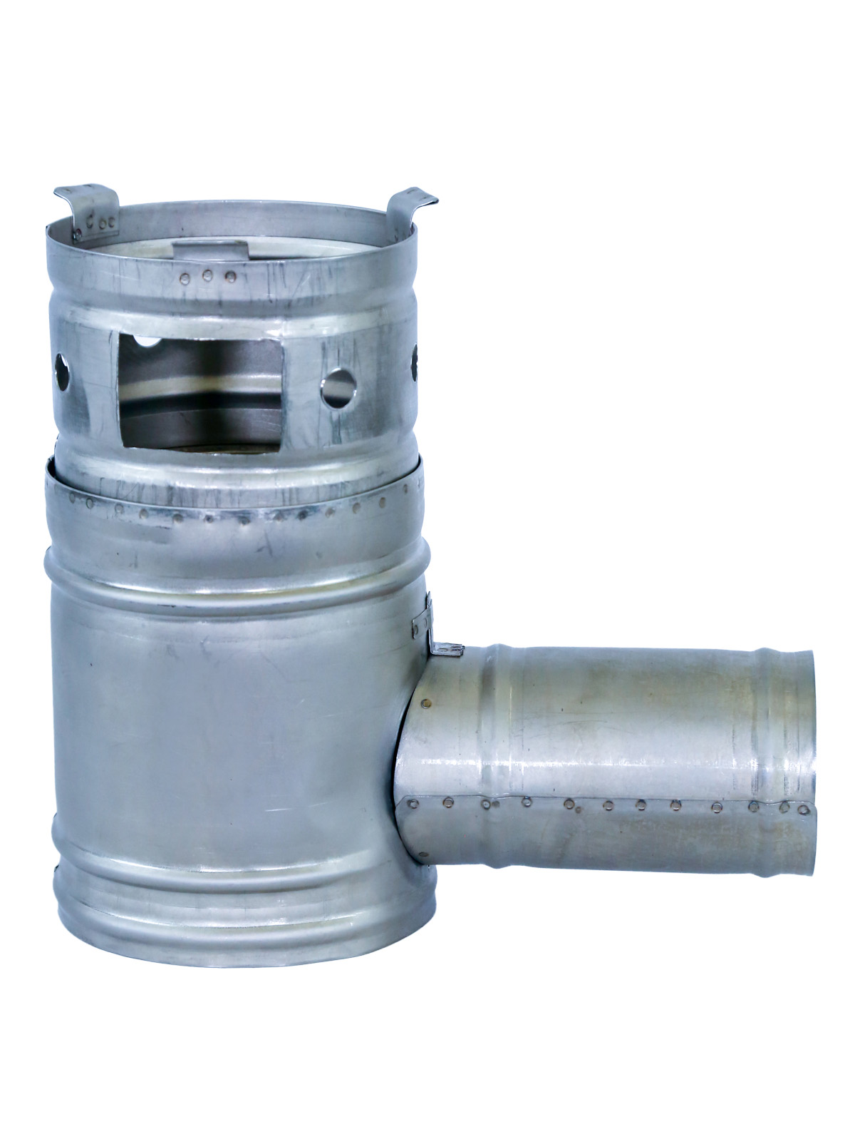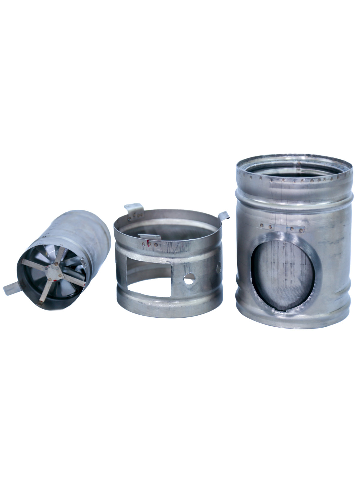 - Надежная, компактная пиролизная печь для использования в туризме и активном отдыхе на природе состоит из трех частей: двустенной пиролизной камеры сгорания, верхней части с окном для подачи топлива и блока нагнетания воздуха