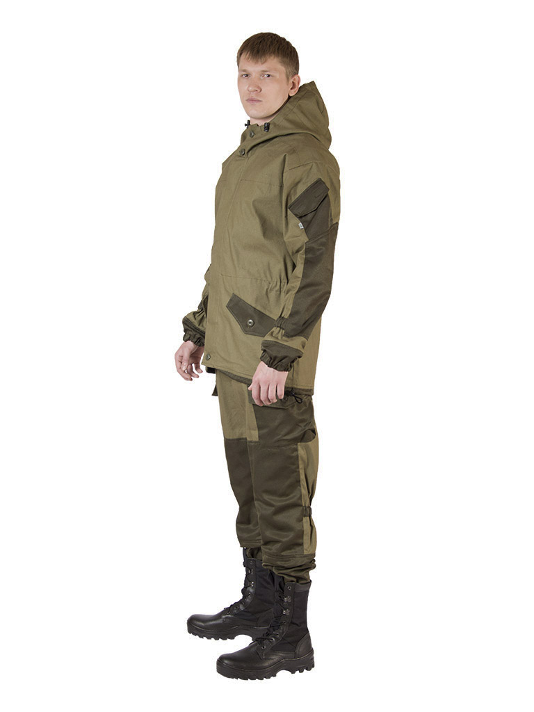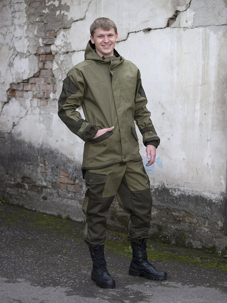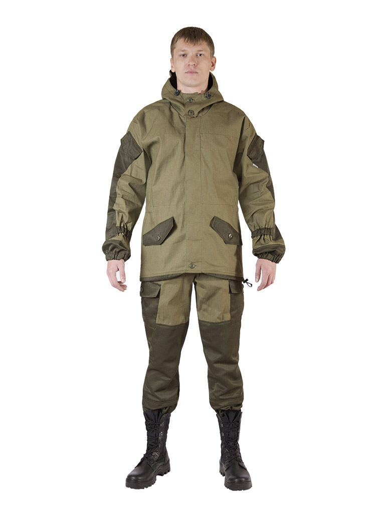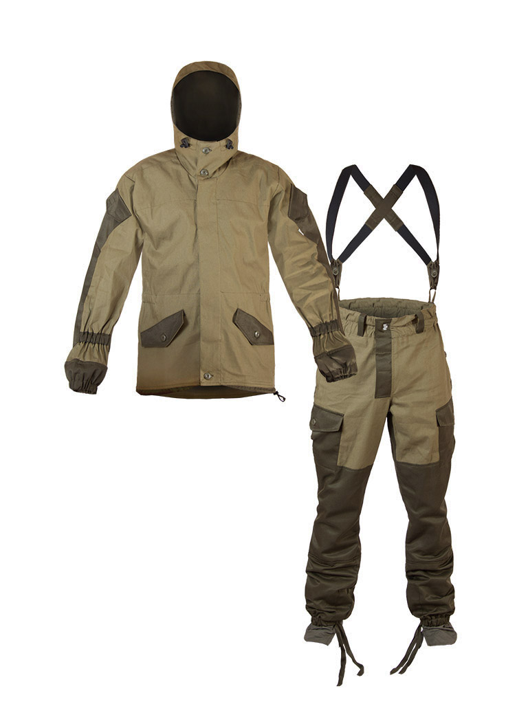 Костюм для боевых условий. Одевается поверх основной одежды. В местах, наиболее подверженных трению (локтей, коленей, сидения), выполнены усилительные накладки.