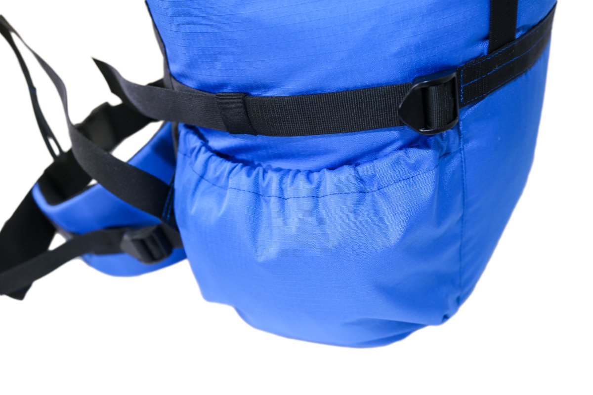 - Внизу на боках карманы-упоры с резинкой в верхнем крае, в них удобно поставить бутылку с водой или трекинговые палки