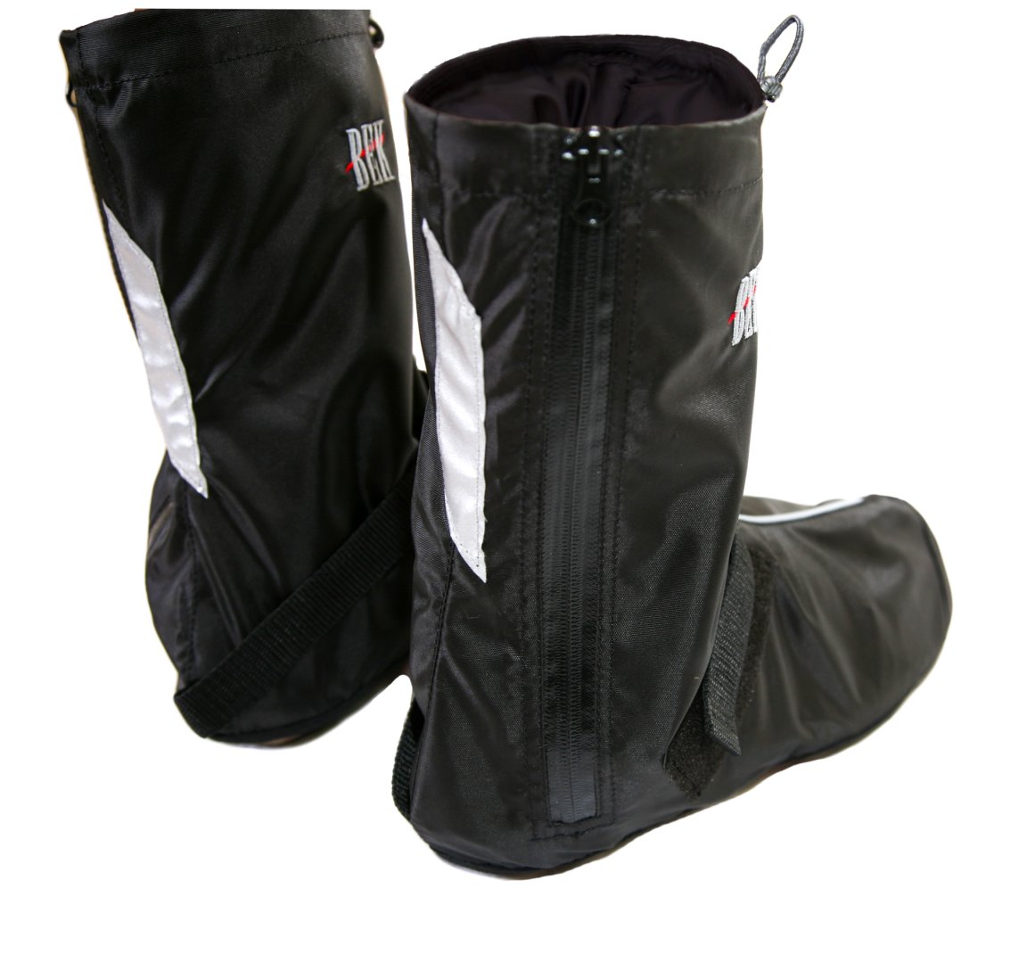 - Застегиваются велобахилы Кросс сзади на влагозащитную молнию.
