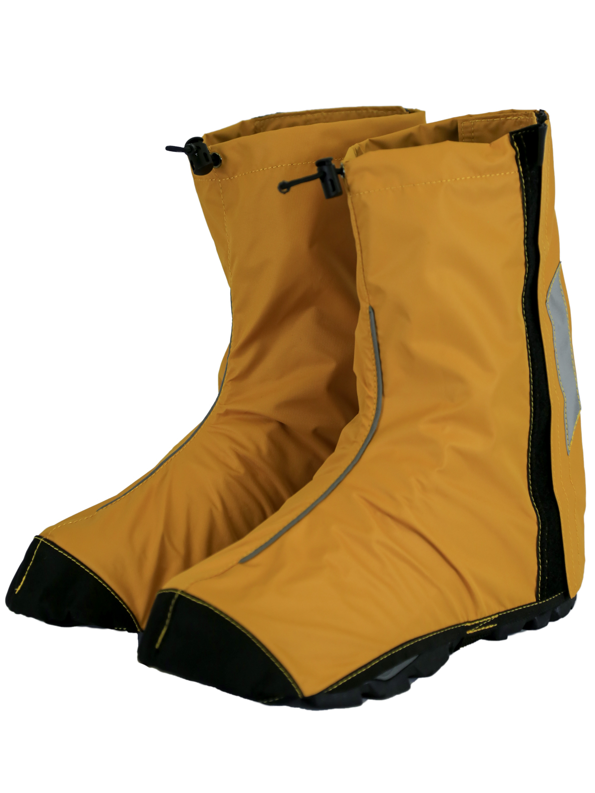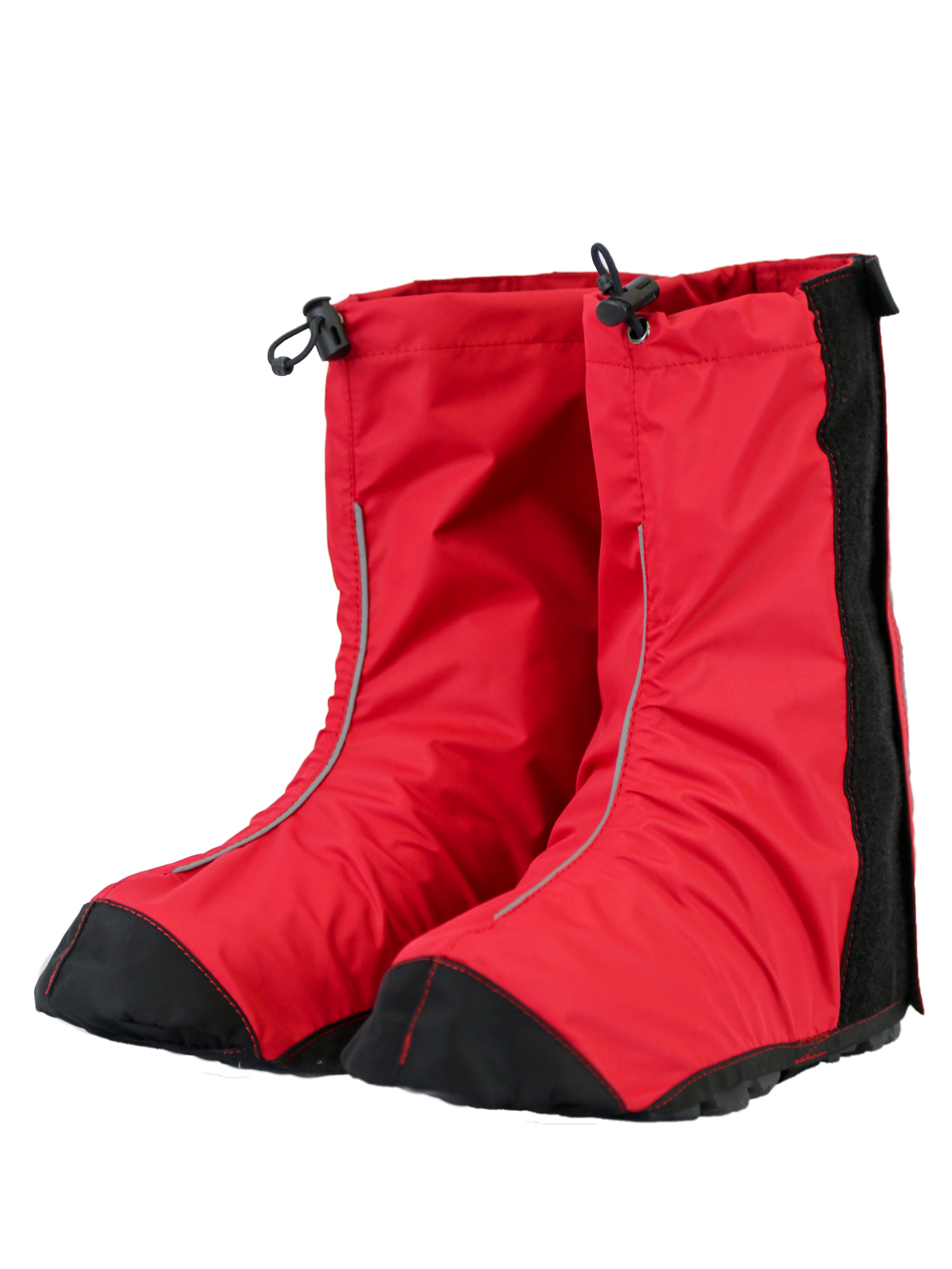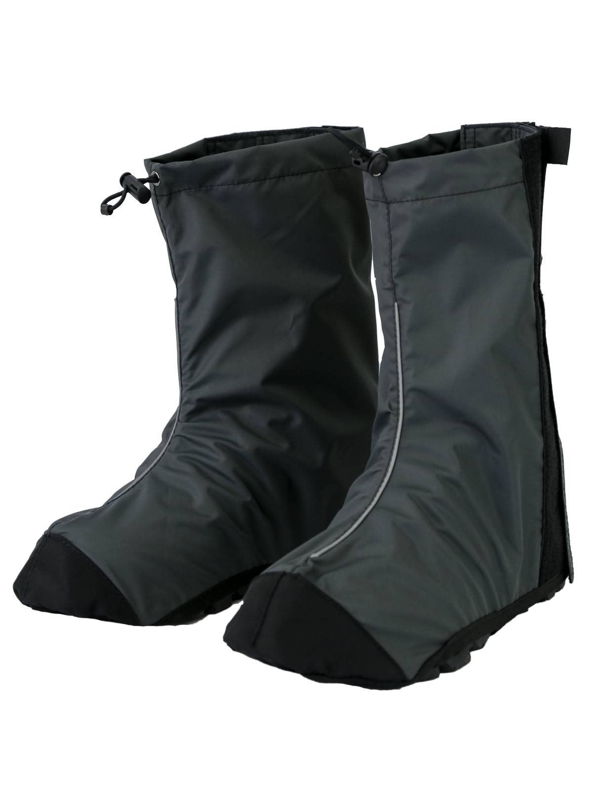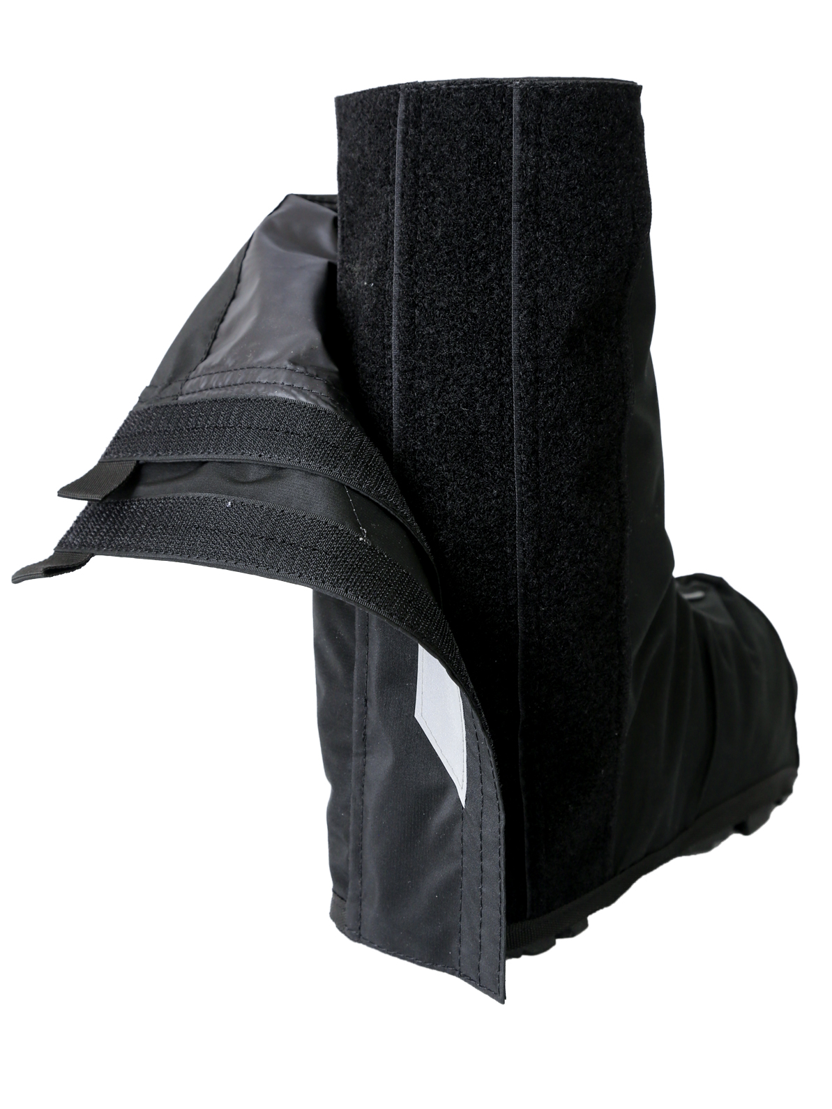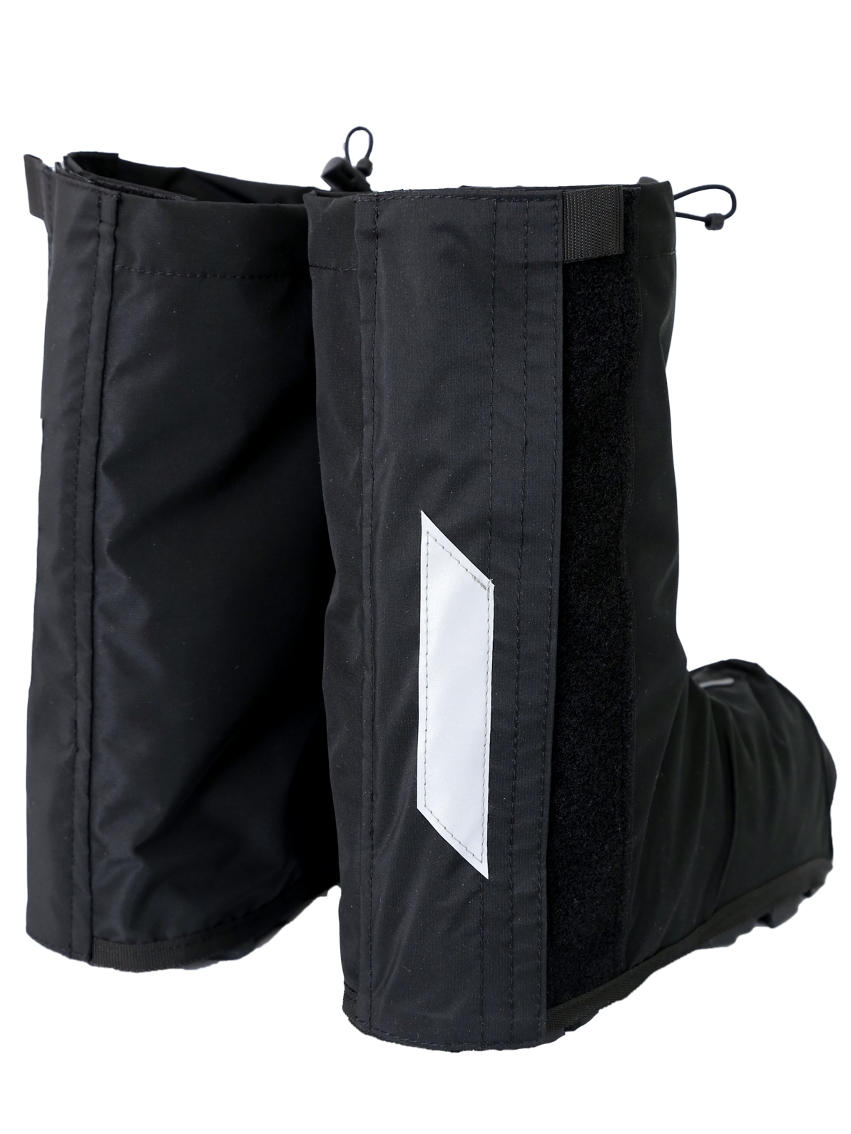 - Велобахилы застегиваются сзади на ленту Velcro с возможностью регулировки. Это позволяет плотно одеть бахил на обувь