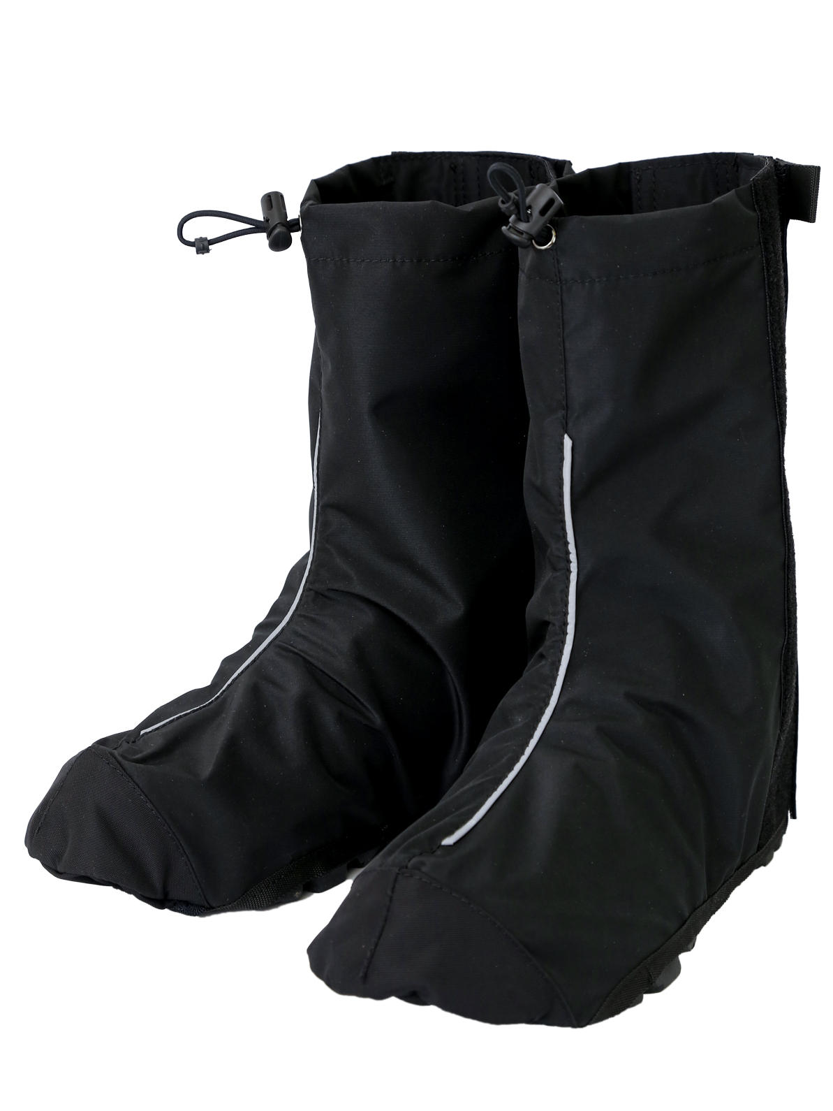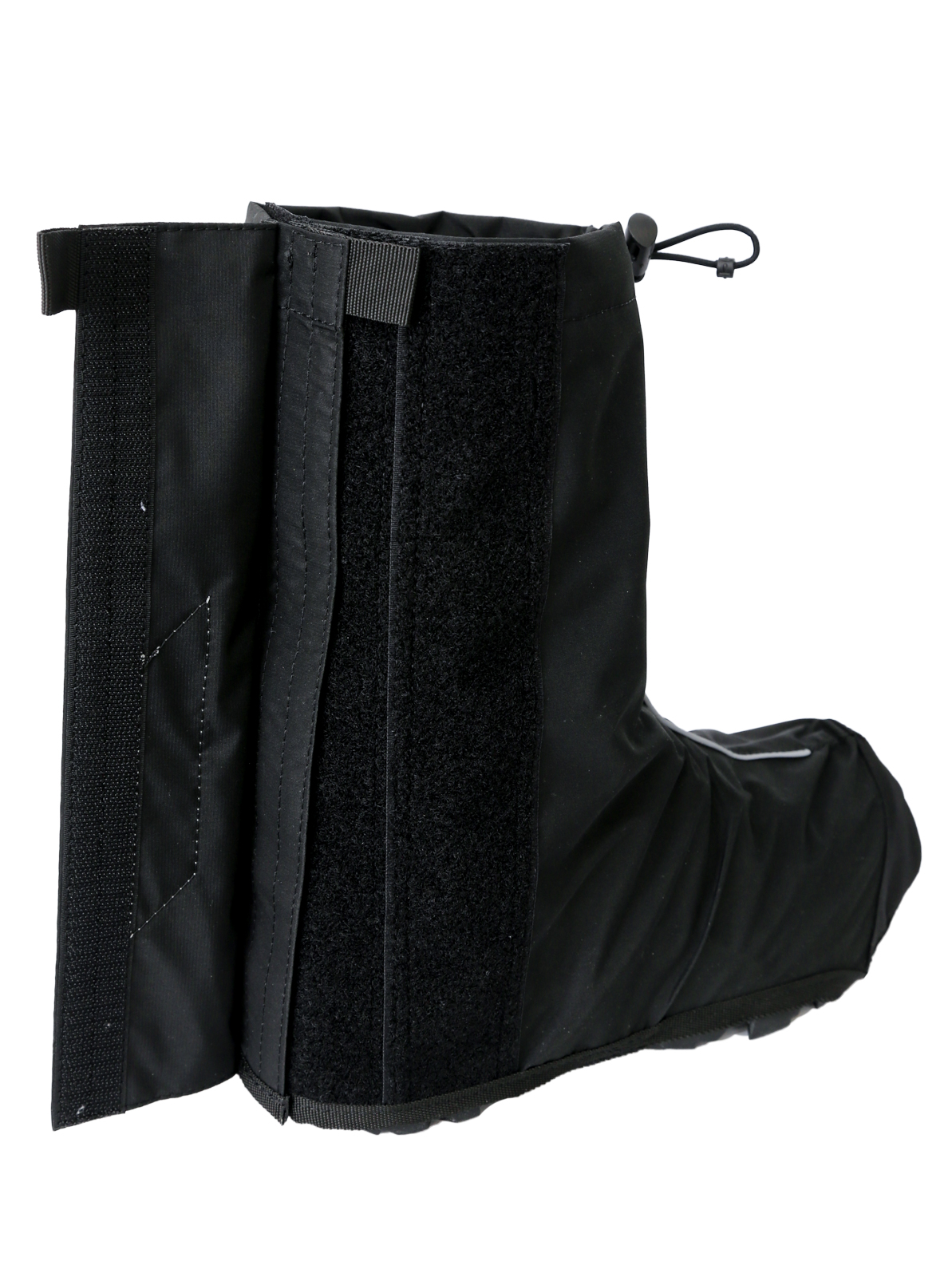 - Верхняя часть велобахил снабжена регулируемой утяжкой для более плотного прилегания бахил к ноге и предотвращения попадания воды