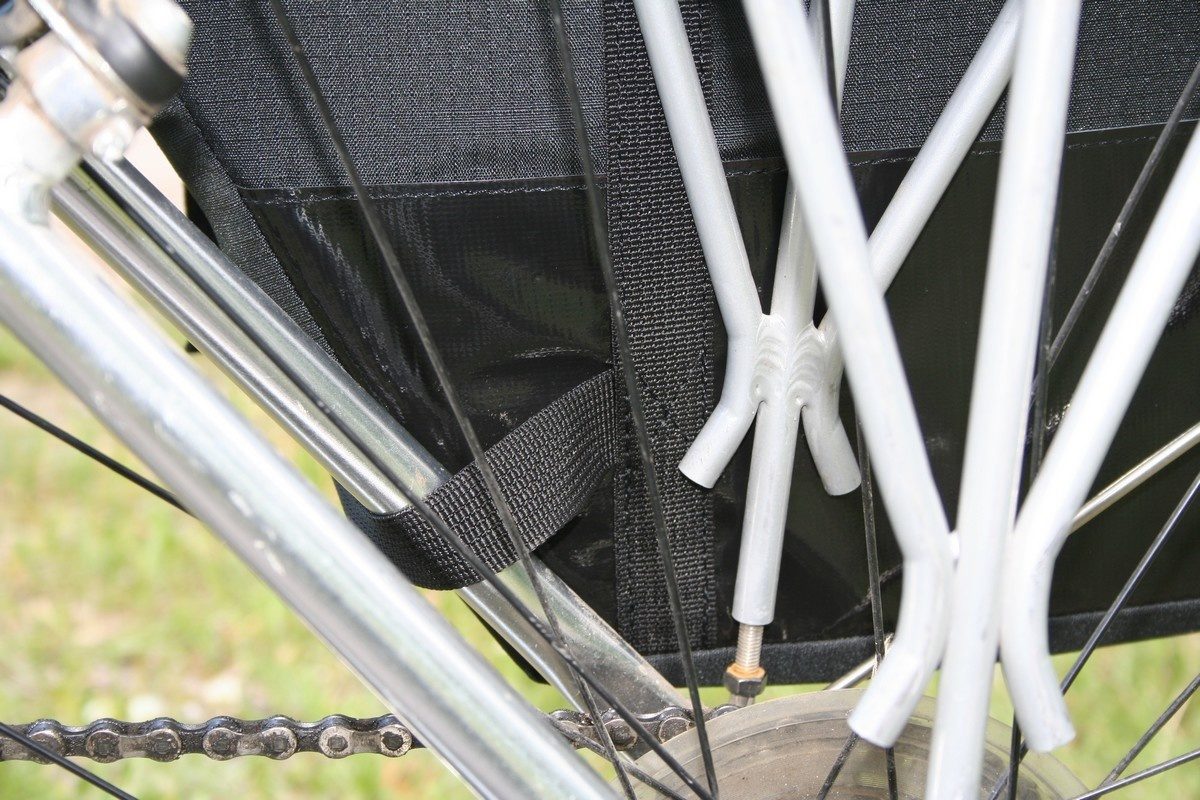 - Нижняя часть сумки с внутренней стороны усилена тезой, чтобы болты багажника не протирали ткань