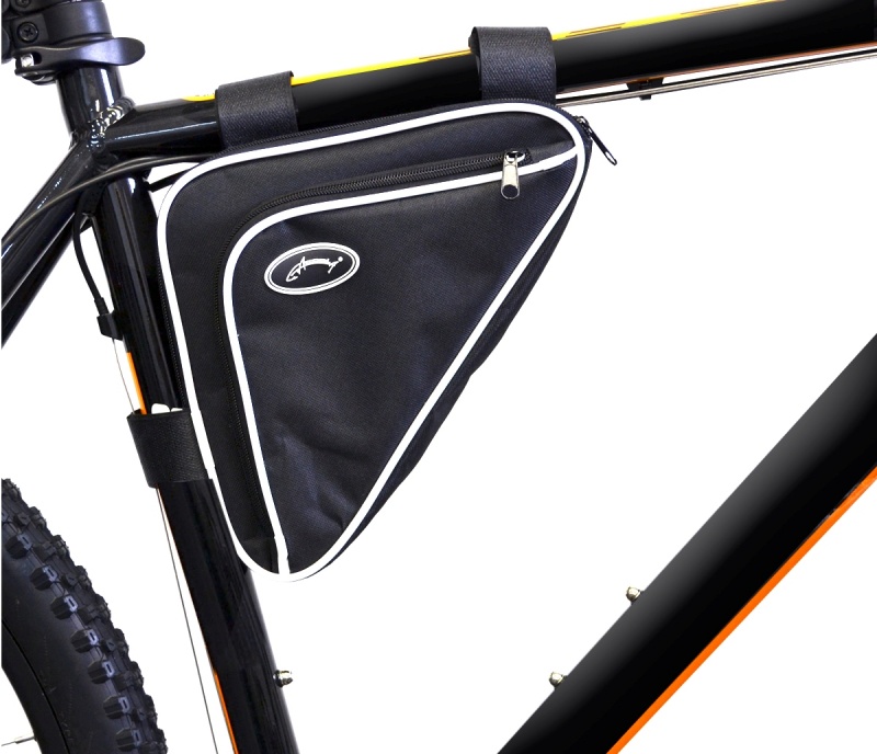 Сумка велосипедная с креплением на переднюю раму. Форма – треугольник. Удобна для перевозки ремнабора, небольших аксессуаров.