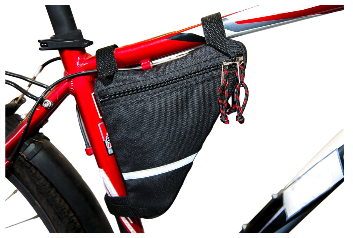 Велосумка Век Угловая малая вмещает все необходимое для мелкого ремонта.