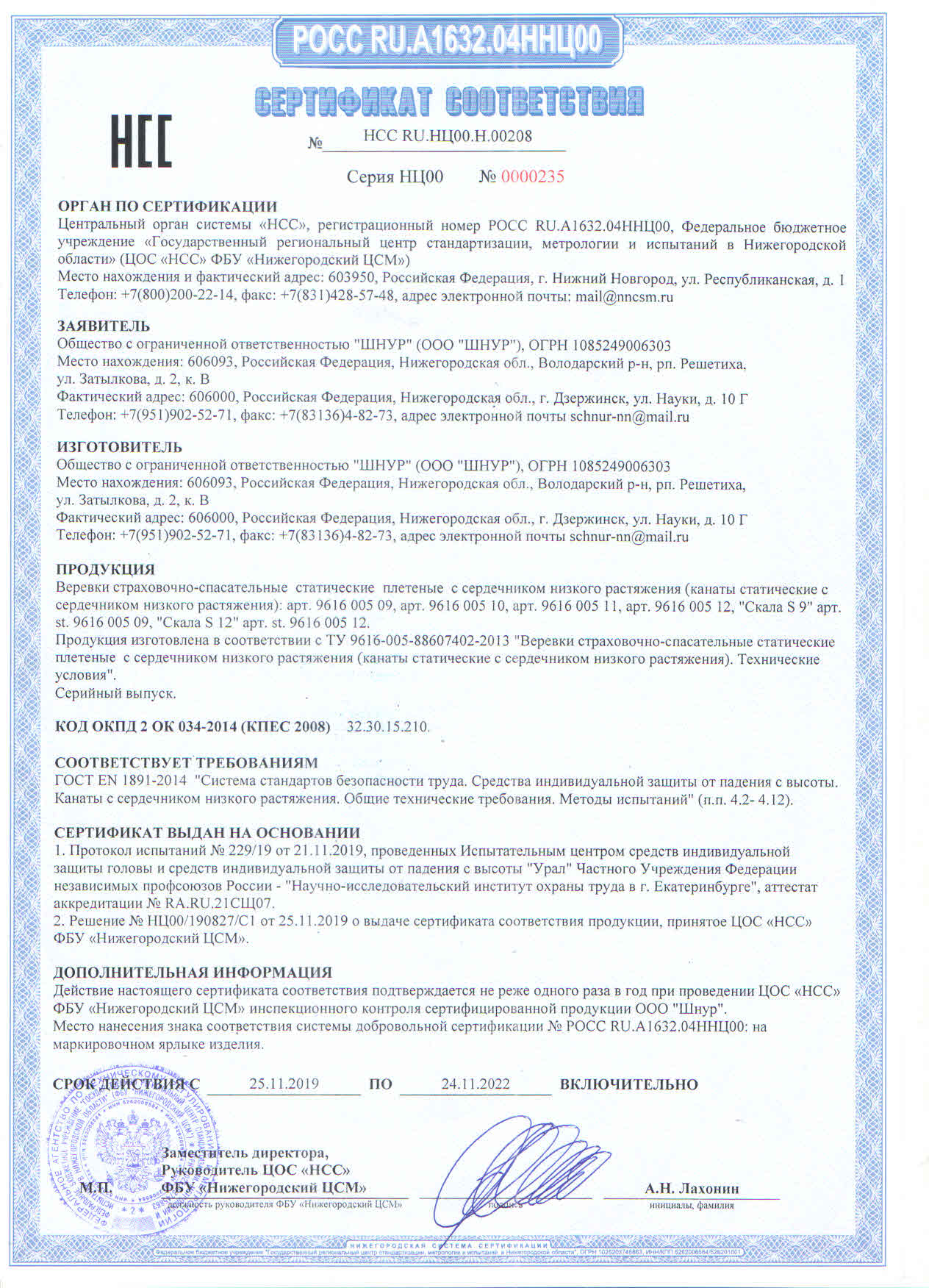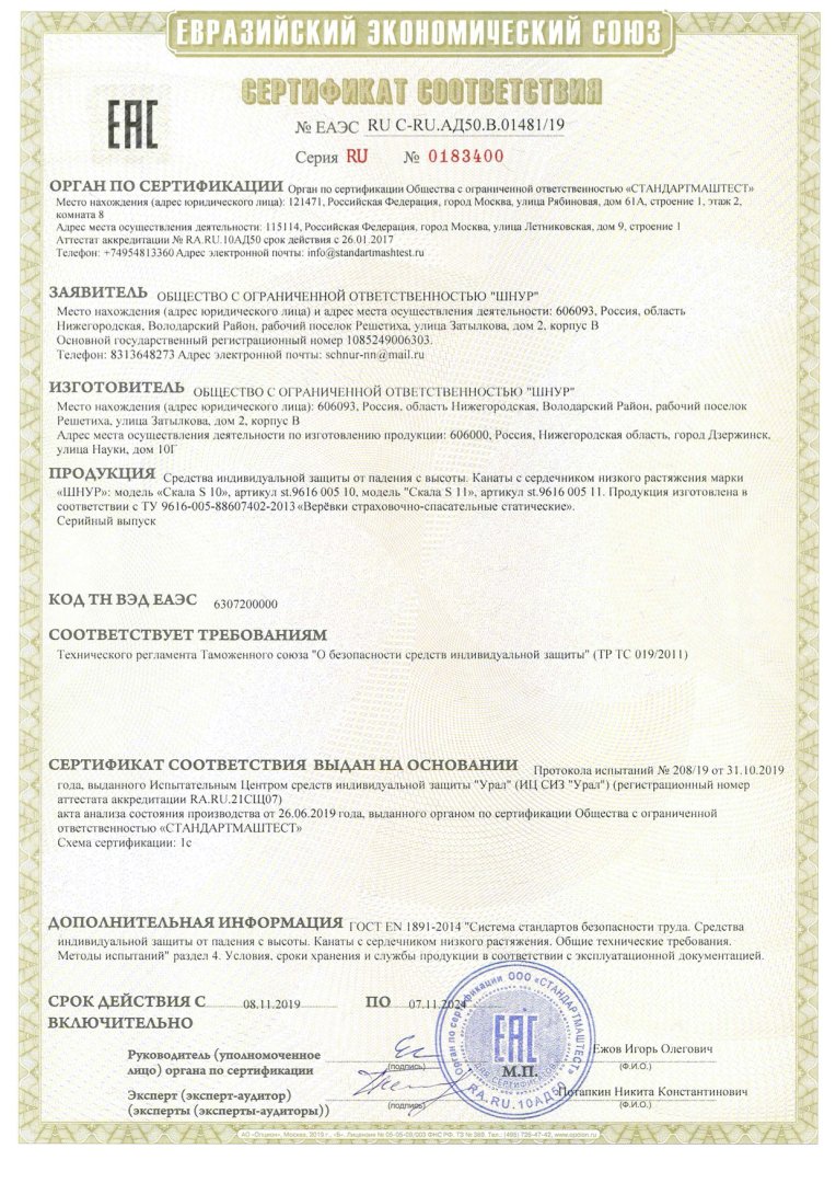 Подтверждено сертификатами качества на соответствие ГОСТ EN 1891-2014 и ТР ТС 019/2011 "О безопасности средств индивидуальной защиты".