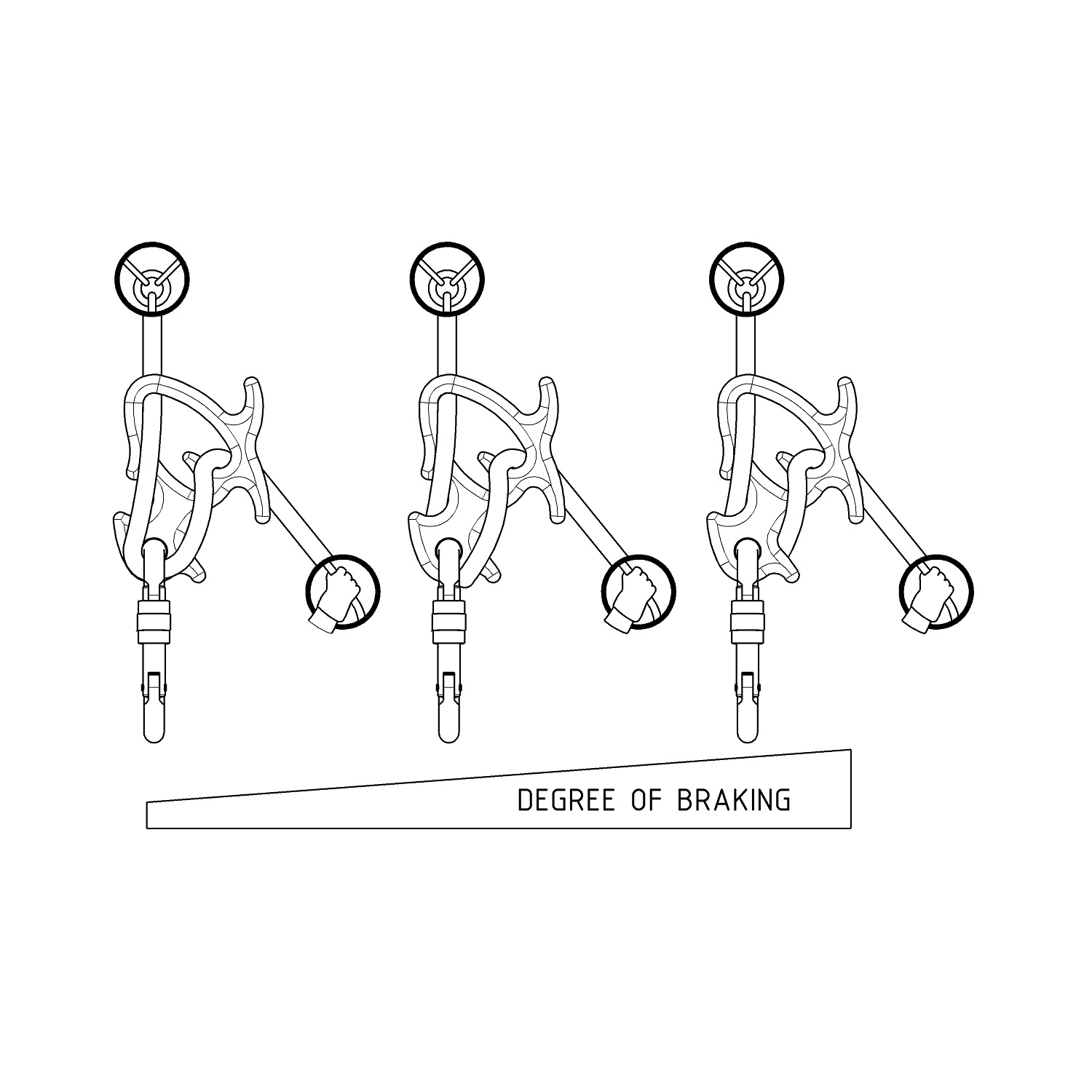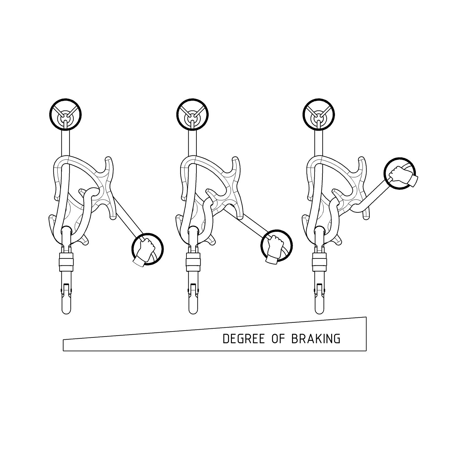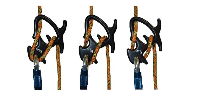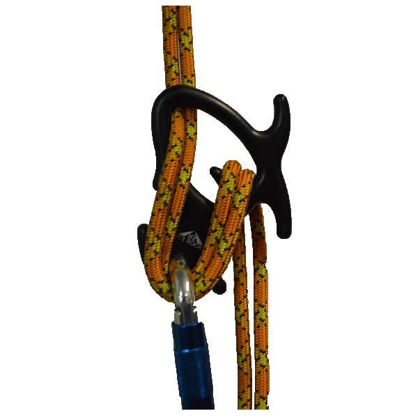 «Быстрая» скорость - верёвка защёлкнута в карабин перед IR0320 Duckling. Накидывая верёвку на «усы» справа можно снижать скорость непосредственно во время спуска