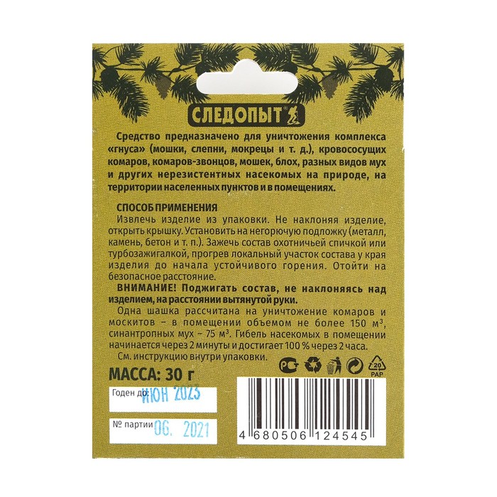 Шашка дымовая от комаров от производителя "Следопыт"