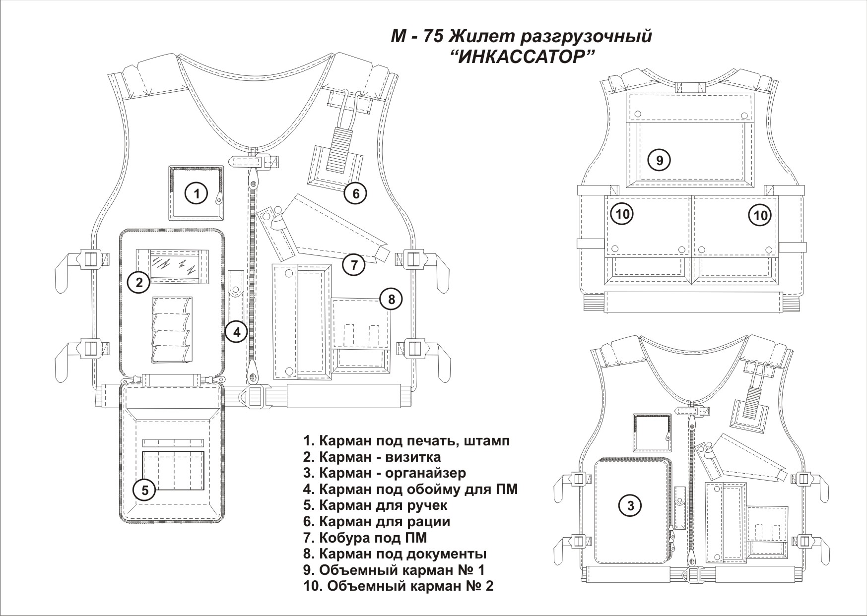 Жилет разработан для служб инкассации банков. Разработан и выпускается с 1996 года.